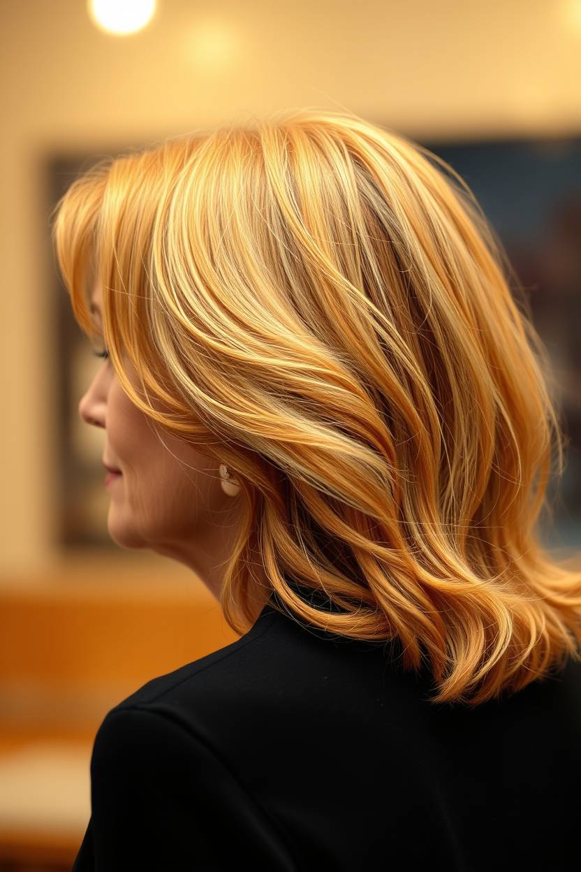 When I do this, I focus the lighter pieces around the face so it brightens instantly. It’s a low-maintenance option too because as it grows, the blend still looks intentional. In my opinion, this style works beautifully for women over 60 who want something gentle but noticeable. You’ll feel a little extra sparkle when the sunlight hits, and I promise people will notice — even if they can’t figure out what’s changed.