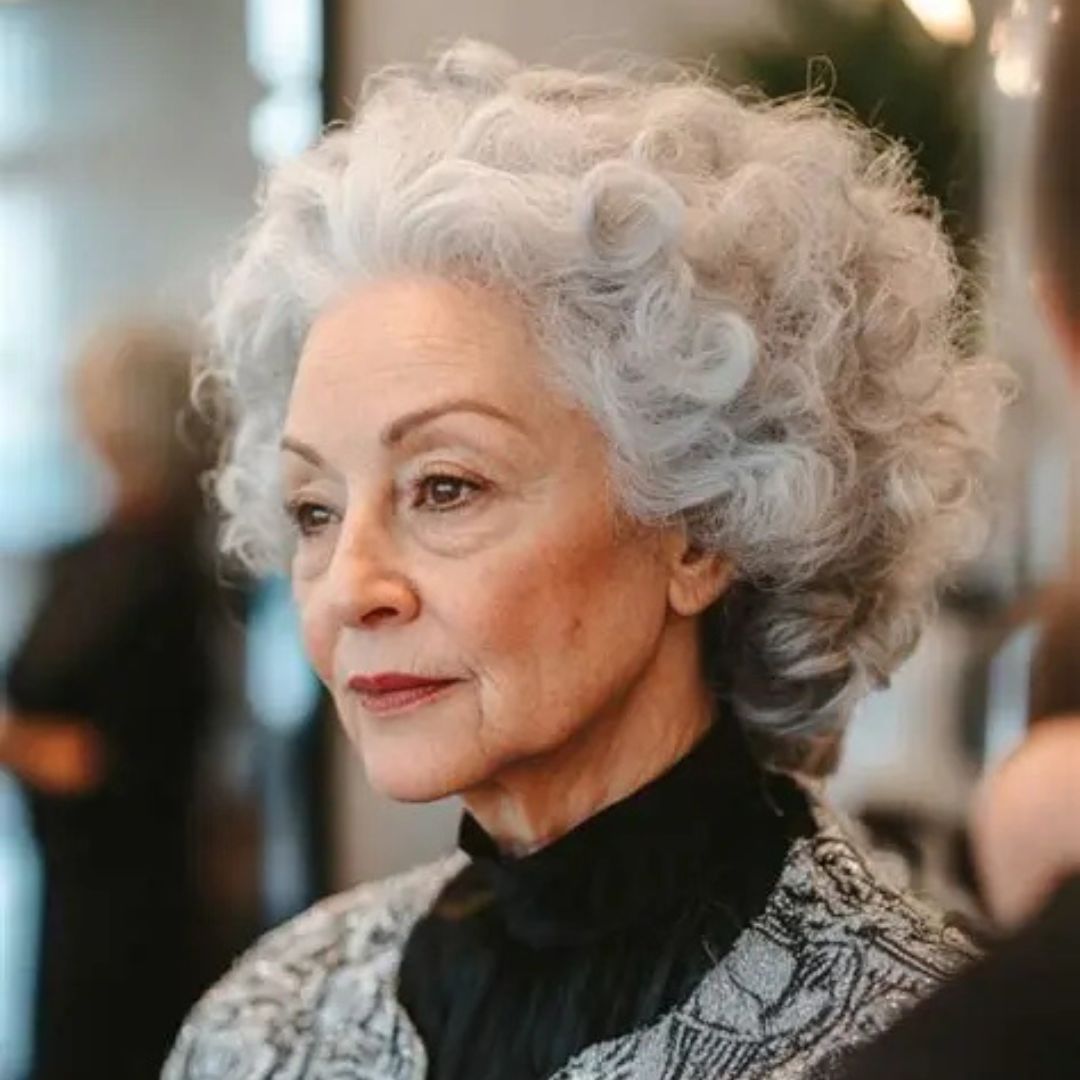 A short curly afro is daring, fashionable, and simple to take care of for women who have natural curls. It also puts emphasis on textures that are natural and creates volume, which frames the face in the most beautiful way possible. The style is also appropriate for round or oval faces and heart-shaped faces. Trimming the afro regularly ensures that it looks presentable, and the use of moisturizing creams or curls makes it soft and shiny. A small curly afro brings out the personality and confidence, and gives the senior woman a contemporary and classy appearance. It is practical and also attractive, and it goes to show that natural hair texture can make one classy and powerful at any age.
