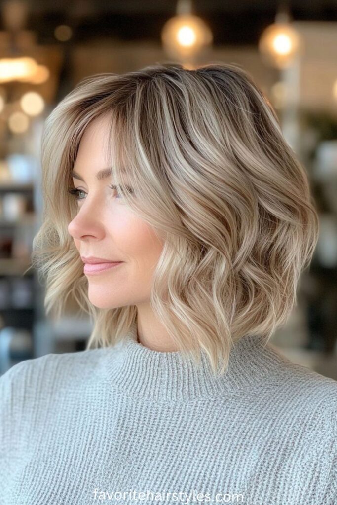 Tousled Lob with Ash Blonde Face-Framing Highlights