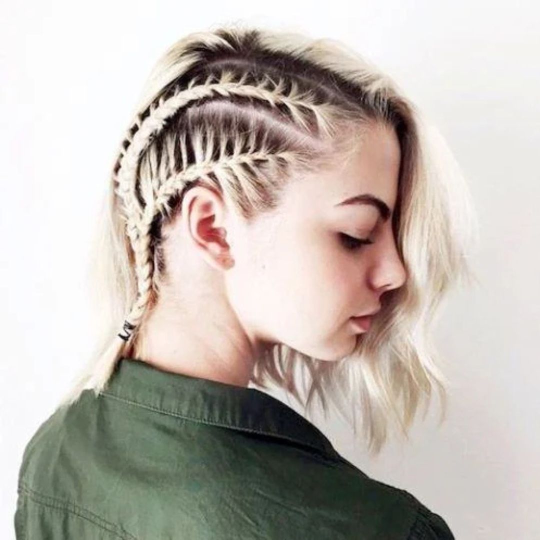 If you want a bold and fashionable appearance, then use double-sided French braids on short hair. Two small braids on the same side of the head. This style provides a fashionable look that is sporty. It is quite appropriate in concerts, festivals, or entertainment with friends. This hairstyle appears fashionable and distinct, even on the layered hair that is short. You can pin both of the braids on the back or braid them into the rest of your hair. It is a stylish method of doing a short hairstyle distinguished.