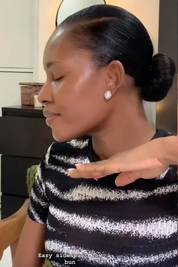 Bun with a part is a conventional and beautiful hairstyle suitable to wear it on a formal event. The side section gives it some softness and depth and the bun maintains the appearance clean and elegant. The style would be perfect to wedding, office or evening parties. You may leave it smooth to look smooth or just a little bit messy to relax. It is possible to add decorative pins or accessories to enhance the general look. It is an eternal decision that is full of class and elegance.