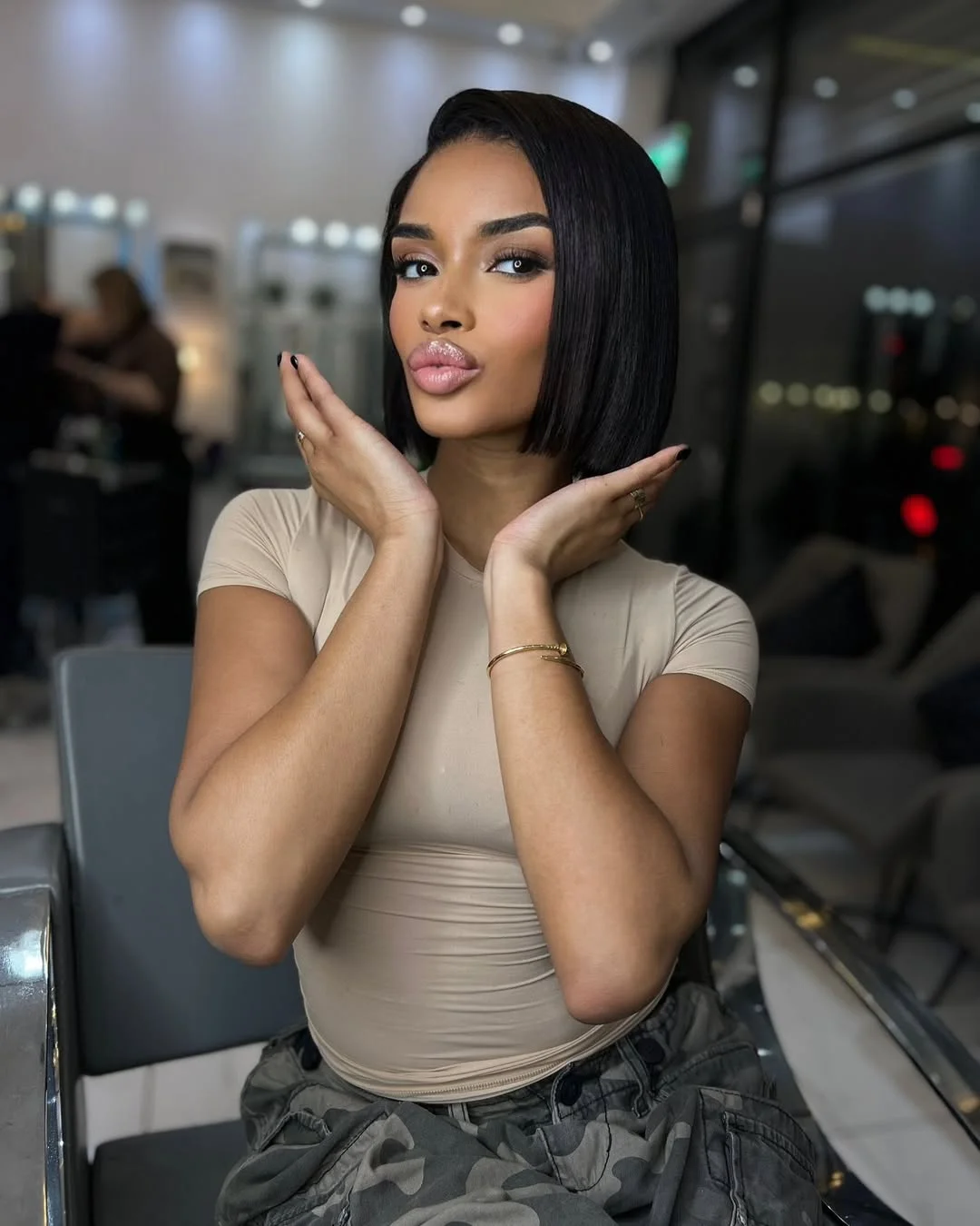 A sleek bob cut is a short and fashionable haircut, which normally stops at the jaw level. It has a daring and contemporary appearance. It appears very smooth and shiny when it is styled straight. This is an ideal haircut that women wish to have, as it looks fresh and confident. You can either have a middle or side part depending on your liking. It is simple to wear and suits both business and ball games. The smooth bob is always fashionable and cool.