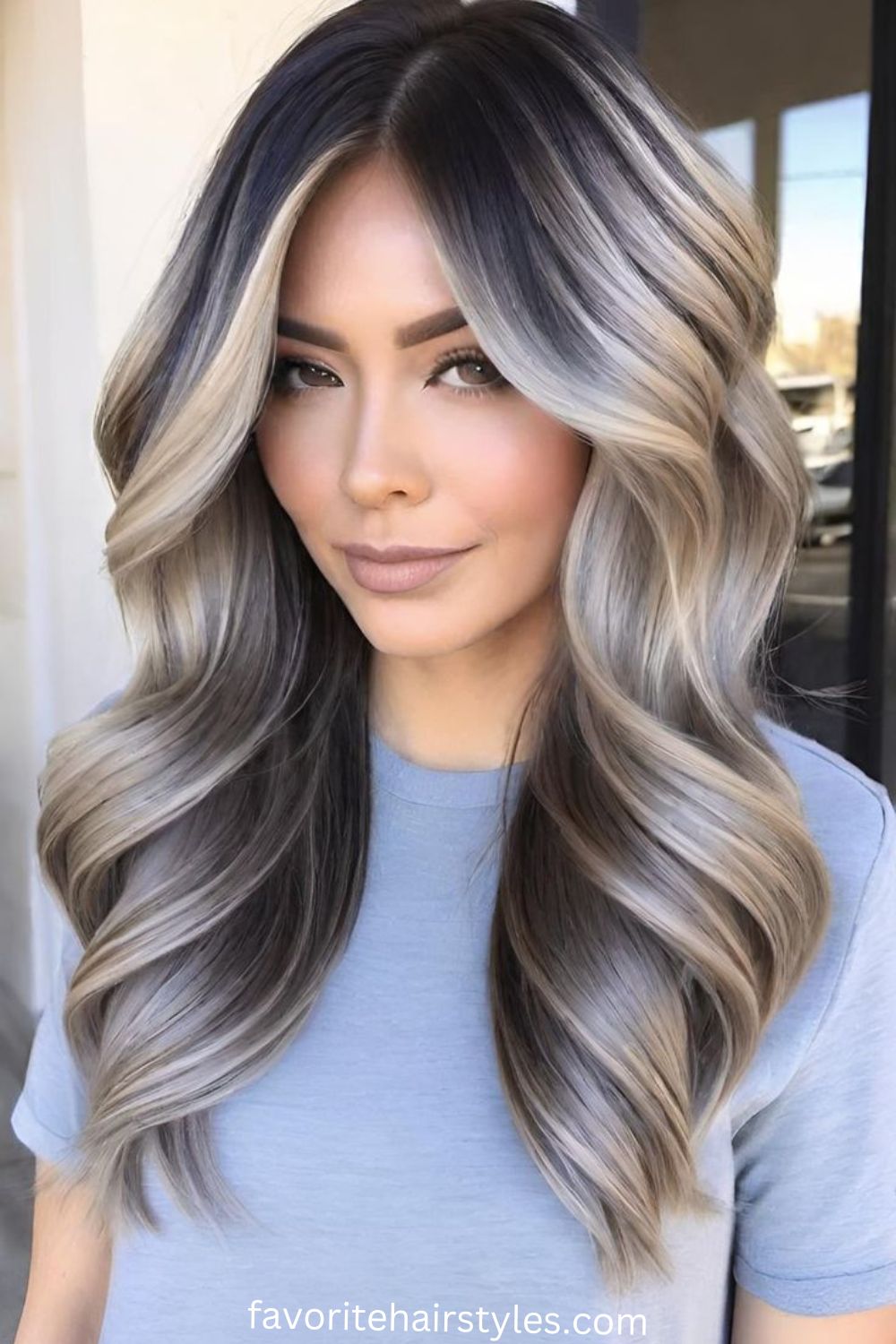 Long Hair Color Ideas Balayage Ash featuring icy tones offer a cool, almost platinum look that’s striking yet refined. This variation is perfect for those who want a bold but polished style.
