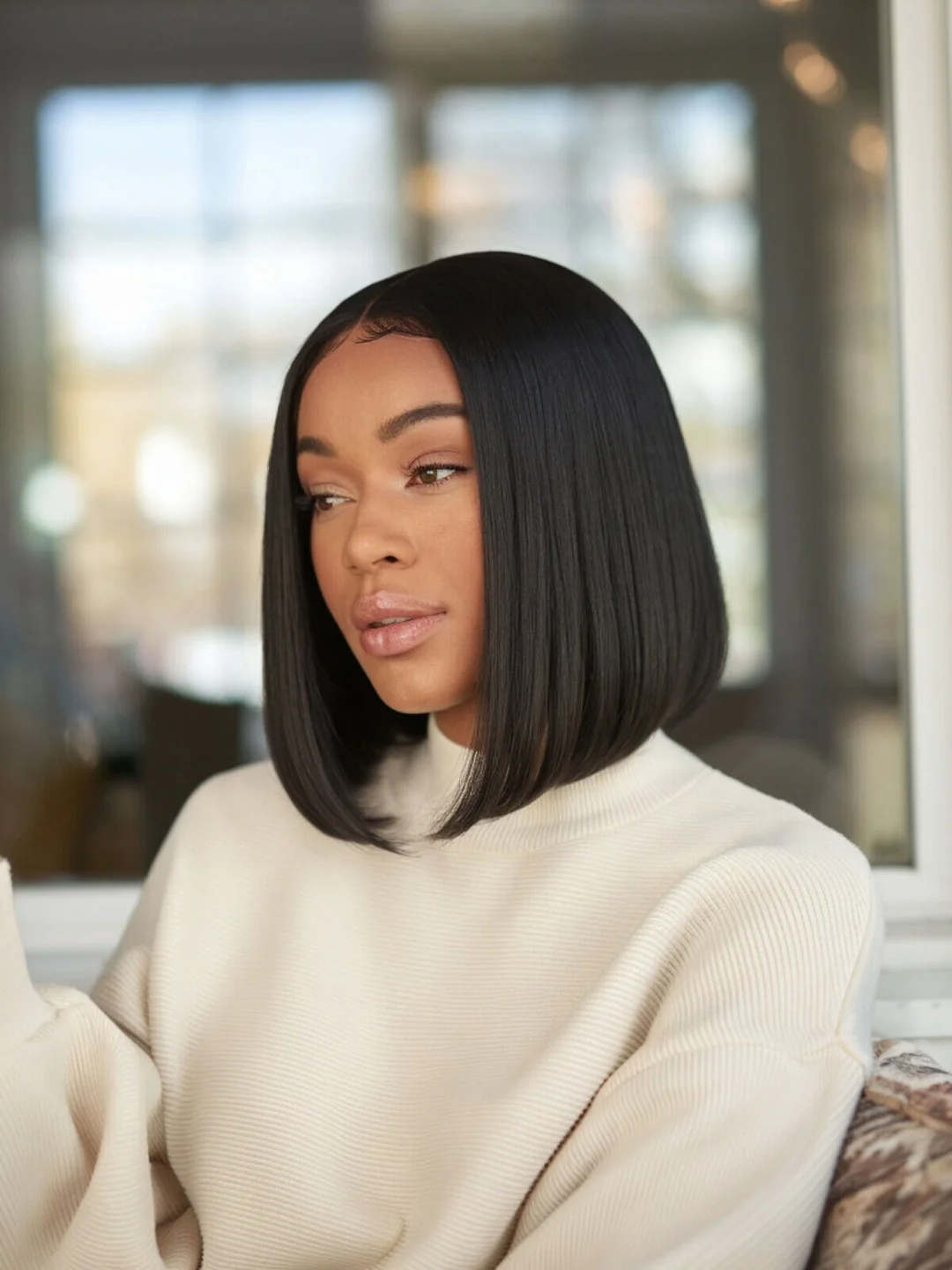 Angled straight bob is a little longer at the front and shorter on the back, aspects that offer a dynamic and modern professional appearance. The style suits wome, who desire an aggressive but sophisticated hairstyle that would be used in the corporate environment. The angled bob highlights the jawline and cheekbones, giving the polished look a structured look. A middle or side part is a way of making the hair look sophisticated,d and straightening is a way of making the hair look smooth and shiny. They maintain easily with periodical trims to maintain form. Angled straight bob suits short or medium length of hair, and is adaptable, trendy, and easily communicates confidence andprofessionalismr.
