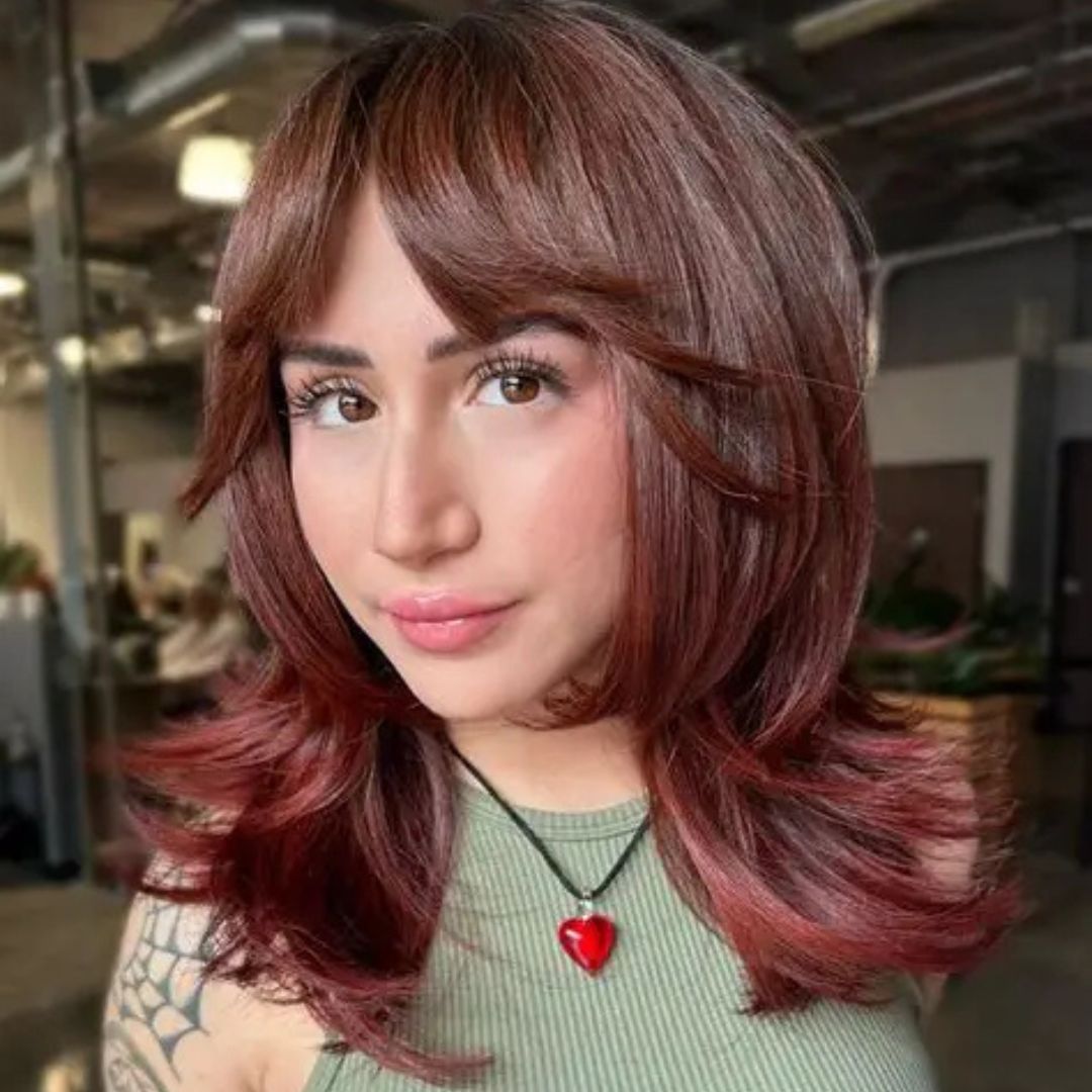 Curtain bangs are fashionable and inspired by retro fashion. This hairstyle is popular due to the likes of Dakota Johnson, who is a famous household celebrity. The curtain bangs are separated at the center and loosely cover the sides of the face with a natural and incidental appearance. They provide volume to the fore, and they are observed to be great with layered haircuts or simple waves. Girls who wish to have a contemporary, but low-maintenance change should get this style. It is long and does not need constant trimming, and thus is ideal when one is getting used to trying on bangs.