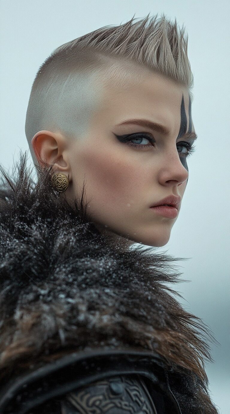 A Mohawk inspired by Vikings is a bold cut short hairstyle that is shaved and faded on the sides and a stylish longer and textured strip along the center. The Mohawk can be spiked, messed up, or plaited to make it more stylish and intertwines historical Viking looks and modern trends. It is a perfect haircut that suits self-confident people and gives them a striking appearance. It is applied to thick and coarse hair, and it gives a great profile of the hair, which brings out facial features. This style can be worn by men and women alike as a way of personal preference, whether it is a subdued, abbreviated Mohawk or dramatic, there is something that will keep the spirit of the Viking warrior alive.