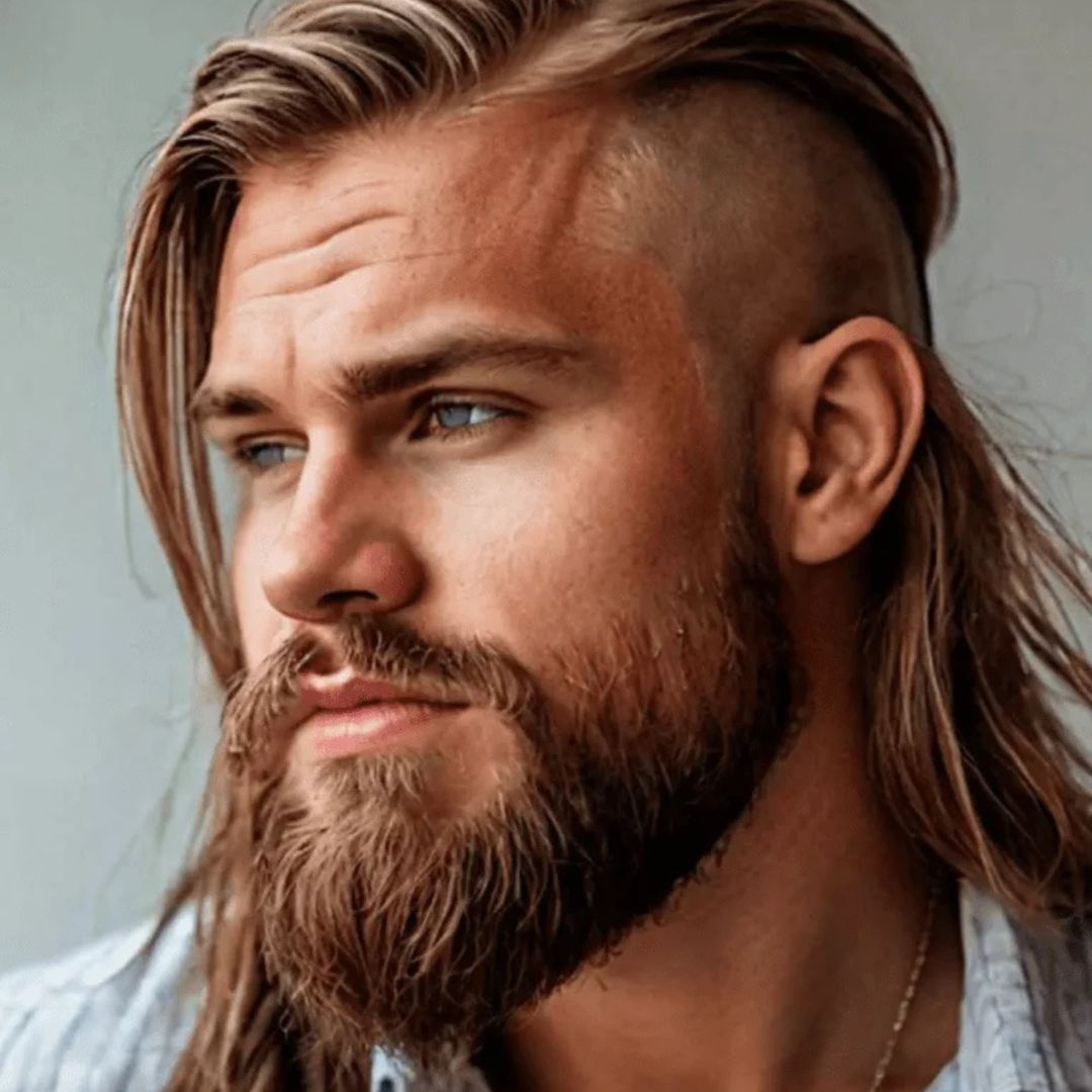 The undercut Warrior Cut has short sides sharply shaved, and long hair on the top, which establishes a contrasting image. The style is versatile, with top hair in the form of quiffs, pompadours, or it may be messy in the case of a casual touch. It is audacious, risky, and suitable for males who desire a contemporary and cool look. Gel, wax, or matte pomade can be used to keep the hair in place and provide some structure and definition. Facial features are also made a point of interest in the undercut, with a thick jawline and cheekbones being the focus. This warrior style look is perfect for every confident man who wants to look out with a sharp hairstyle.