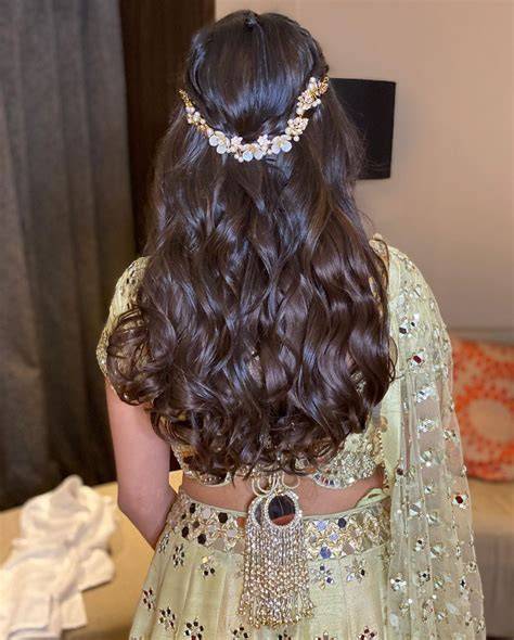 A side braid to open hair is a gorgeous tradition for a new hairstyle. On one side, a braid is just a small criggle, which is a continuation of the loose waves or curls, which also provides interest and texture. The braid may be adorned with flowers, beads, or hair jewelry, making it look celebratory on the bride. The hairstyle suits lehengas and sarees, and to a large extent, it suits mehndi and sangeet functions. It has made the hair trendy and easy to handle without being overly fancy, so that it does not look like hair is growing open.