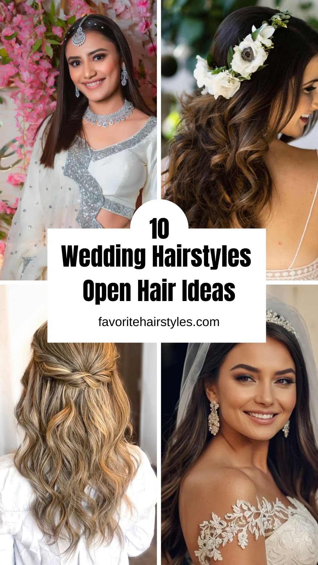 Wedding Hairstyles Open Hair Ideas – Open hair styles are an ideal wedding hairstyle that brides use to ensure that they are elegant, romantic, and beautiful during their wedding day. The open hair wedding hairstyles have become extremely popular since they are able to add a natural hair texture, as well as provide a pleasing, sophisticated, ft and classy bridal appeal. Open hairstyles, whether in the form of loose curls and glamorous waves, sleek straight styles, half-up designs, and numerous other styles, provide unlimited possibilities in the styling of hair in various events of a wedding, e.g., engagement, mehndi, sangeet, wedding day, and also in the reception. These hairstyles accompany a variety of wedding aattiresuch as lehengas, sarees, as well as contemporary wedding dresses.