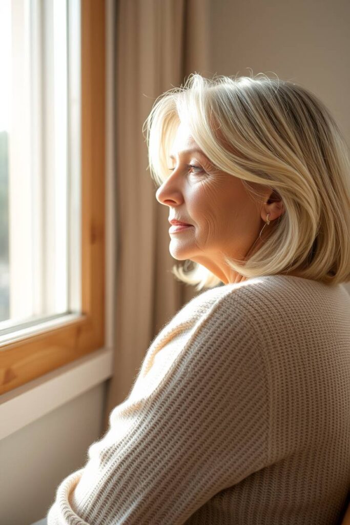 White blonde hair is a stunning way for women over 60 to embrace their natural beauty with elegance. These shades blend beautifully with gray, offering a fresh, radiant, and low-maintenance look.