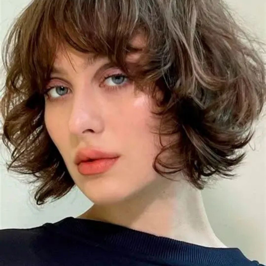 A short, curly bob on the chin adds bulk to both sides of the cheeks, a long, rectangular face. Soft natural curls or a perm are used to give the body and movement so that it would have a lively, flattering appearance. This type of style is most effective when paired with ordinary conditioning and curl-defining products to avoid frizz. The curls make the face look wider, smoothing off the straight jawlines and giving it a young look. It is ideal among women who prefer a carefree, playful texture that does not need much heat styling. Healthy curls keep the haircut fresh and easy to handle, and hence, this show of hairstyle is stylish and convenient.