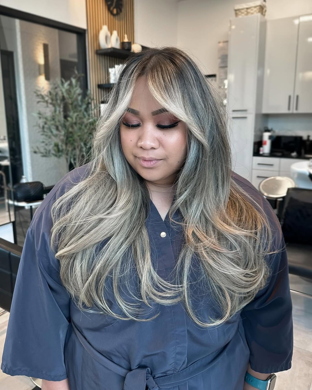 - Blend with Face-Framing Layers – Bangs that are paired with layers will improve definition and roundness, as well as balance.