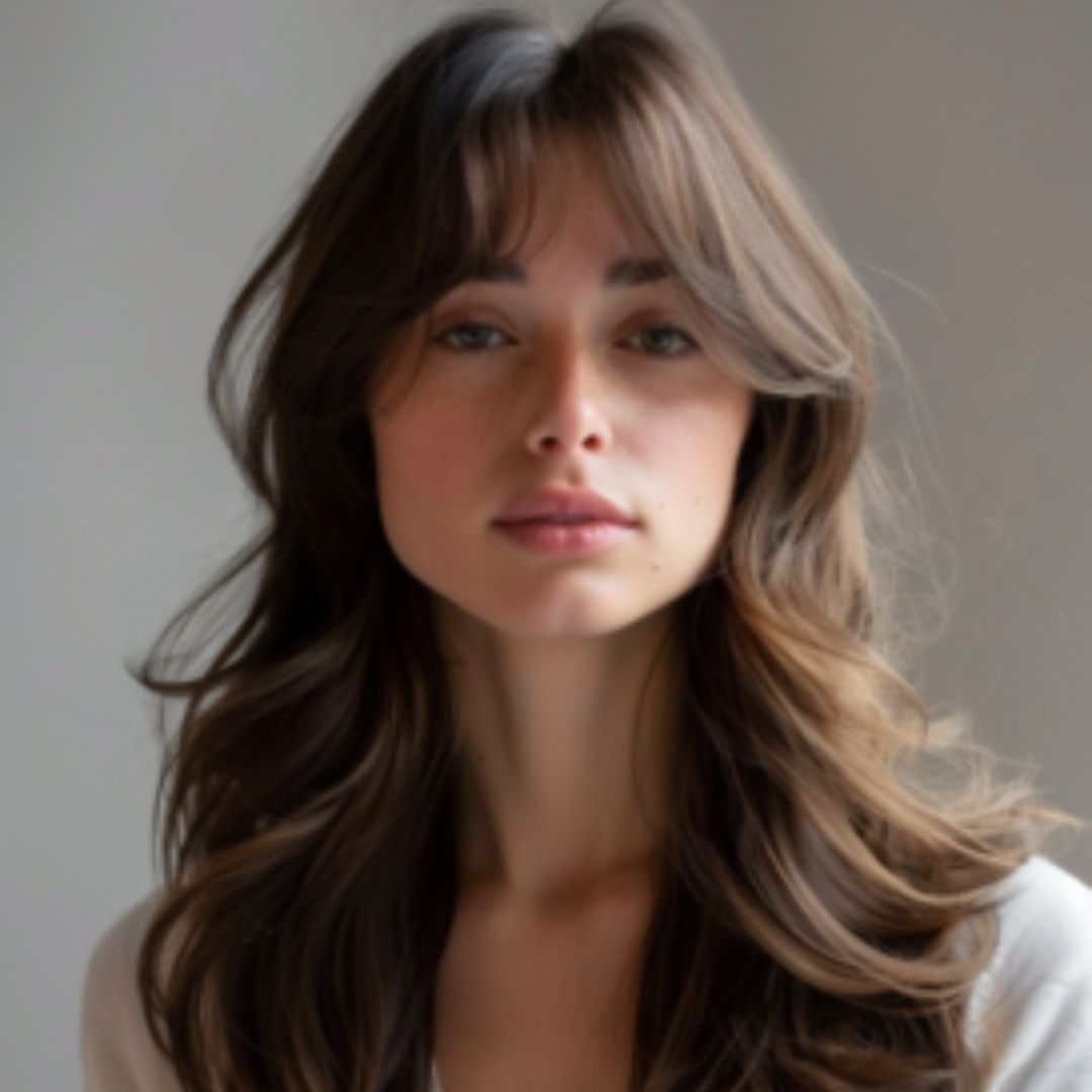 Side-swept curtain bangs are ideal for a tender, graceful appearance. You make the bangs go to the side, and that way you balance thface’sce roundness with the asymmetry. It is applied to long, medium, or layered hair and is more suited to straight, wavy, or slightly curly hair. The curtain bangs on the sides, diverting attention to the fuller cheeks and enhancing the focus on the eyes and cheekbones. They are all-purpose or casual and can be pinned or changed to fit various styles to change the appearance easily, to wear, or to appear more professional or formal, and yet they have a flattering effect on round faces.