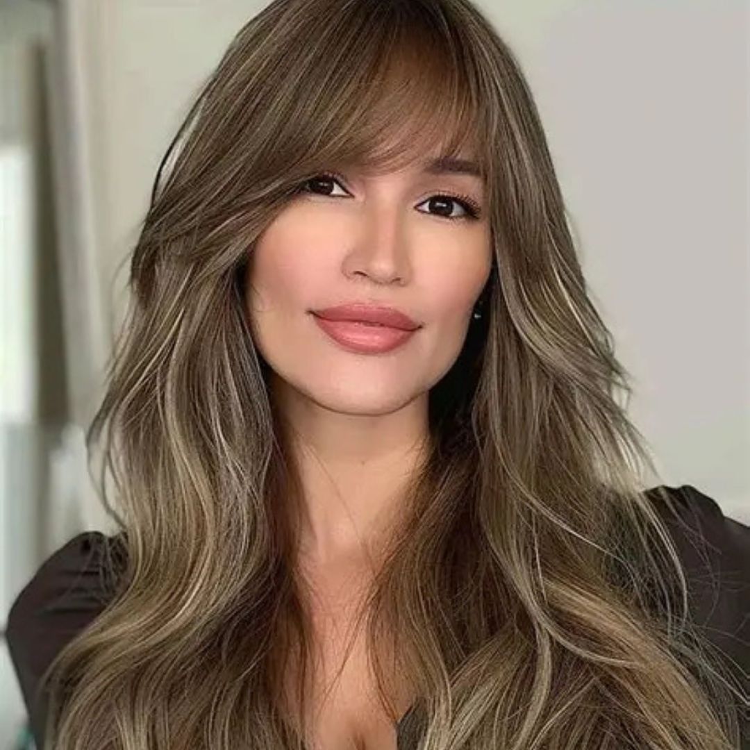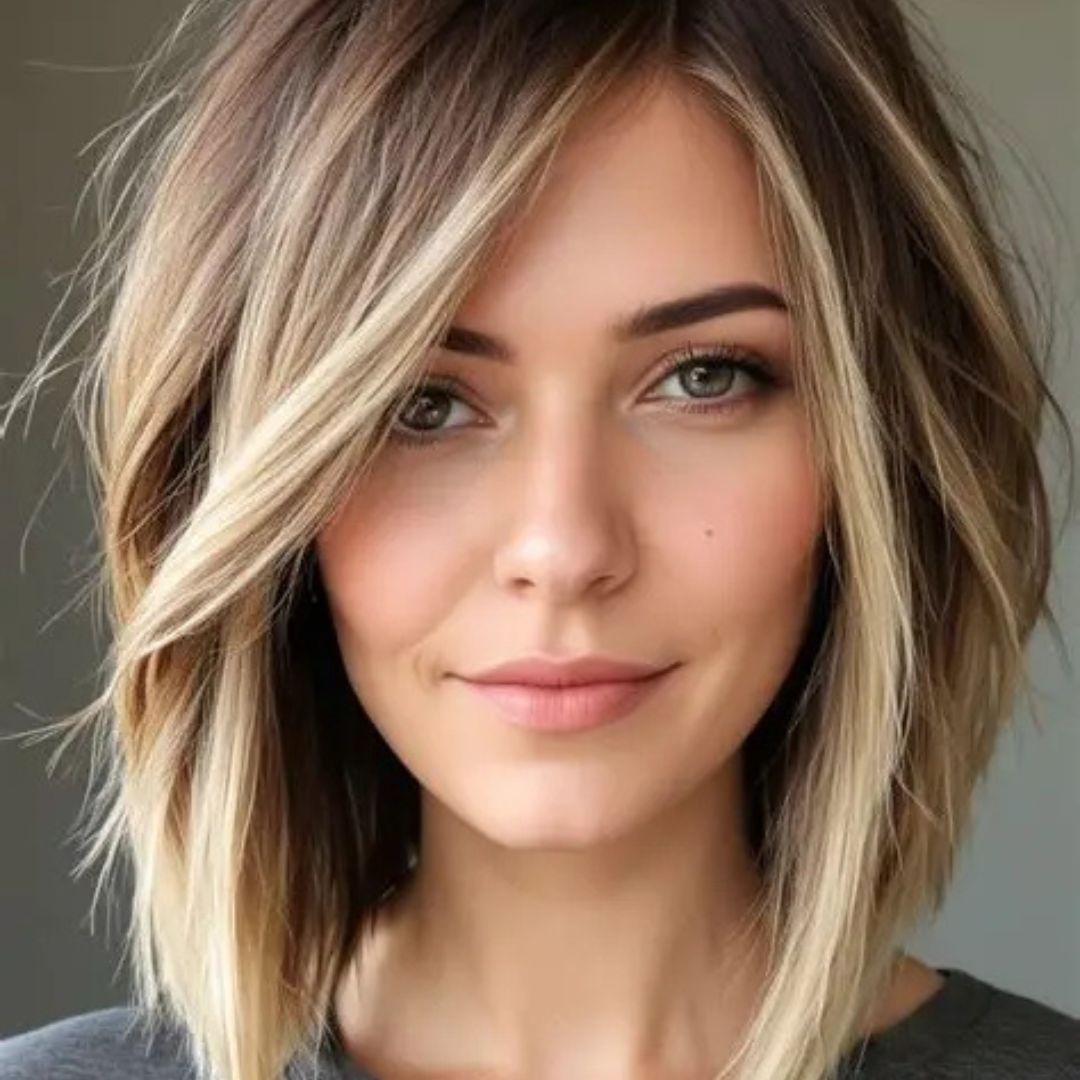 Face-framing layers coupled with side-swept bangs are also good to balance off a slender forehead and prominent cheekbones. The bangs are directed diagonally, which also has the visual effect of reducing the sharpness of the face and moving the eyes, giving them a soft and attractive appearance. These bangs are fused into longer strands that shape the jawline, which brings in symmetry and motion. This mix is really effective on medium and long hair lengths and provides a professional look that can be used on everyday and on some formal occasions. It is an excellent alternative to women who want softness and structure without taking a firm or sharp commitment.