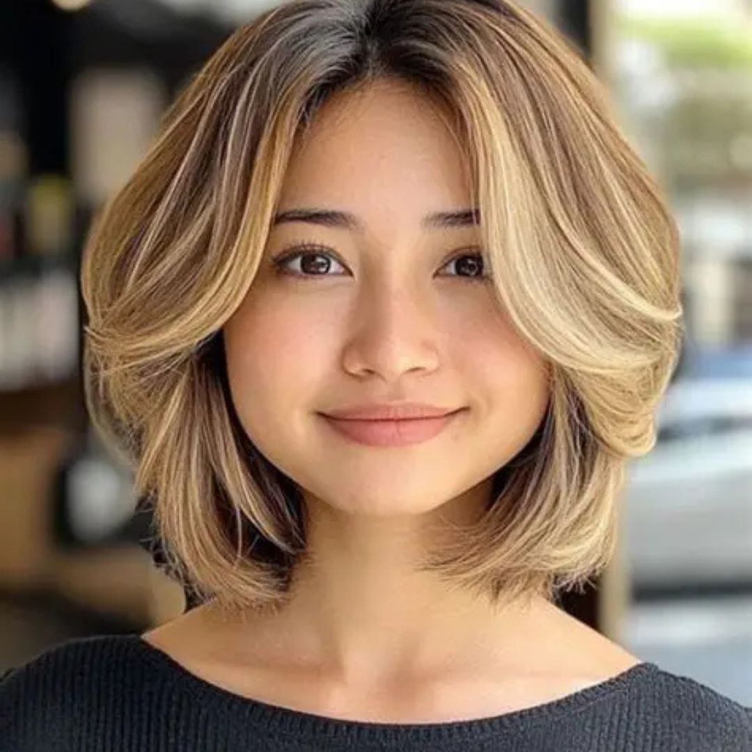 A layered bob, which ends at the chin, can go a long way in promoting a diamond face, where there is the use of a short bob. This was done to give the face more width in the area where it is thin, and it balances out a pointy chin and highlights a beautiful jawline. Face-framing strands, which are soft and close to the cheekbones, are designed to soften harsh bone structure, giving it a polished and friendly appearance. It is trendy, contemporary, and multi-purpose- ideal among women who need a clean and fashionable dressing up. The hairstyle is very effective with straight or slightly wavy hair types and provides an easy means of styling, like a sleek-straight hairstyle, curled ends, or volume to create an edgy look.