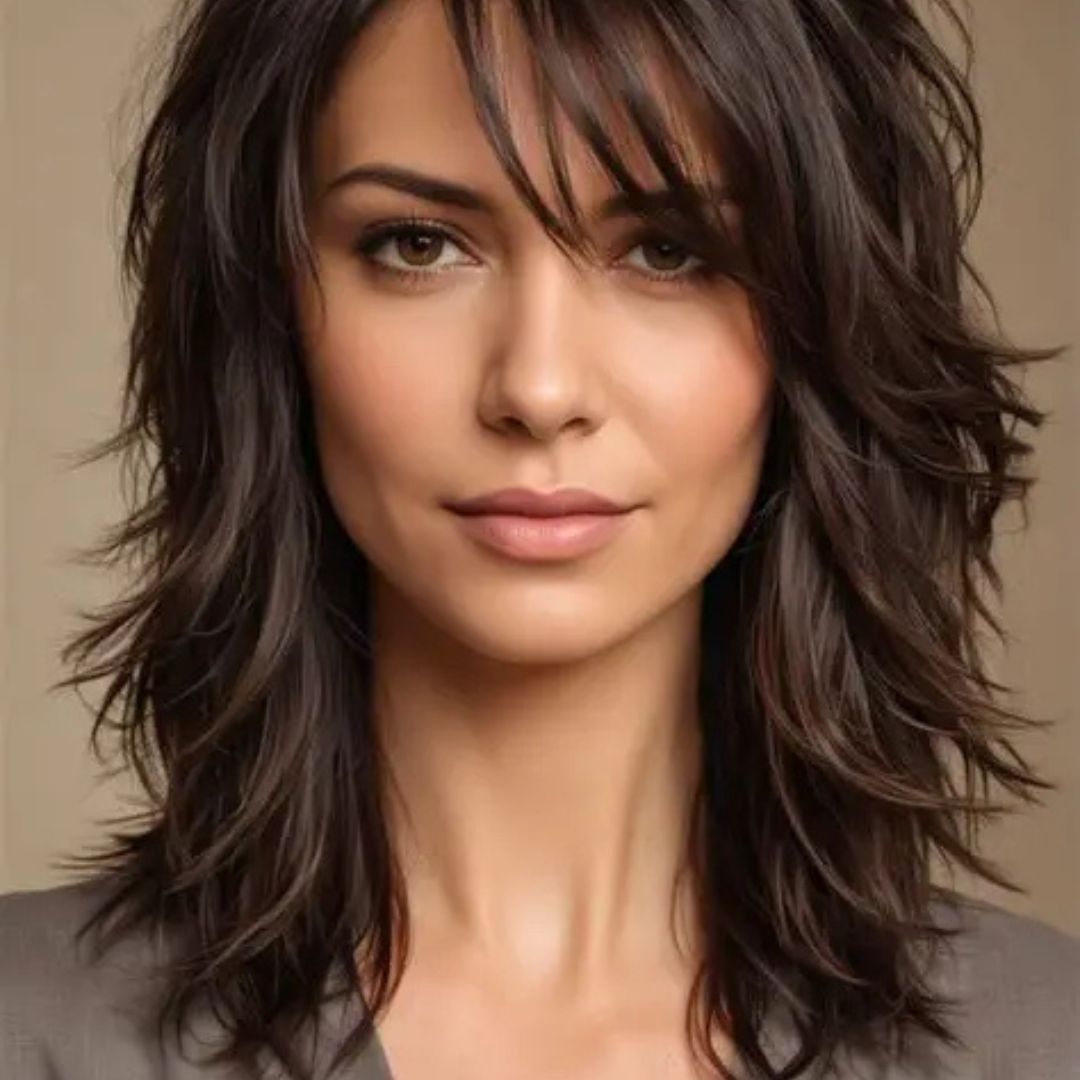 Layered with feathers, a texture that is soft, lightweight texture is formed that looks excellent to contrast with the hard lines of a diamond face. The feathering method gently slims parts of hair so that the cut will drop freely around the face, not being bulky at all. It is an ideal medium and long hair length with movement that makes it elegant. It flattens deep cheekbones and accentuates the lips and eyes. Flocked layers are gorgeous with a blowout or natural waves, and also appear elegant as they cascade down. It is a great selection of women who like soft and feminine hairstyles that are easy to maintain.