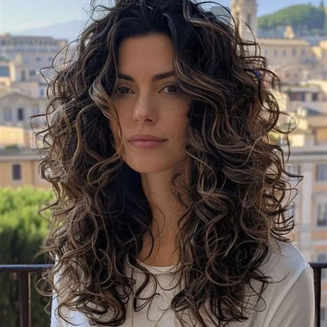 Layered curls are worn to improve the natural curly hair and give it structure, and not excessive volume at the top. Layers are cut very carefully to preserve the form of curls and frame the face most beautifully. The hairstyle suits well with long, oval faces since it will flatten out the length of the face and give more prominence to cheekbones. Layered curls may be worn in their natural foformor they may be defined using products that enhance curls. Frequent cuts make curls springy and avoid split ends. This is a vibrant, young, fashionable look and is ideal for a woman who would enjoy the look of the textured and dynamic hairstyles that need very little styling each day, yet give it a dramatic effect.