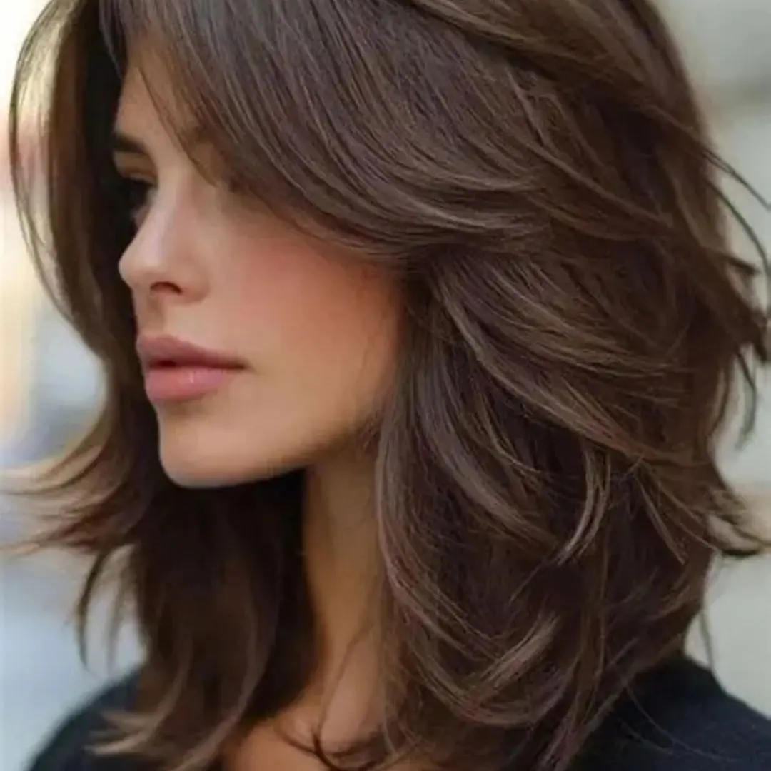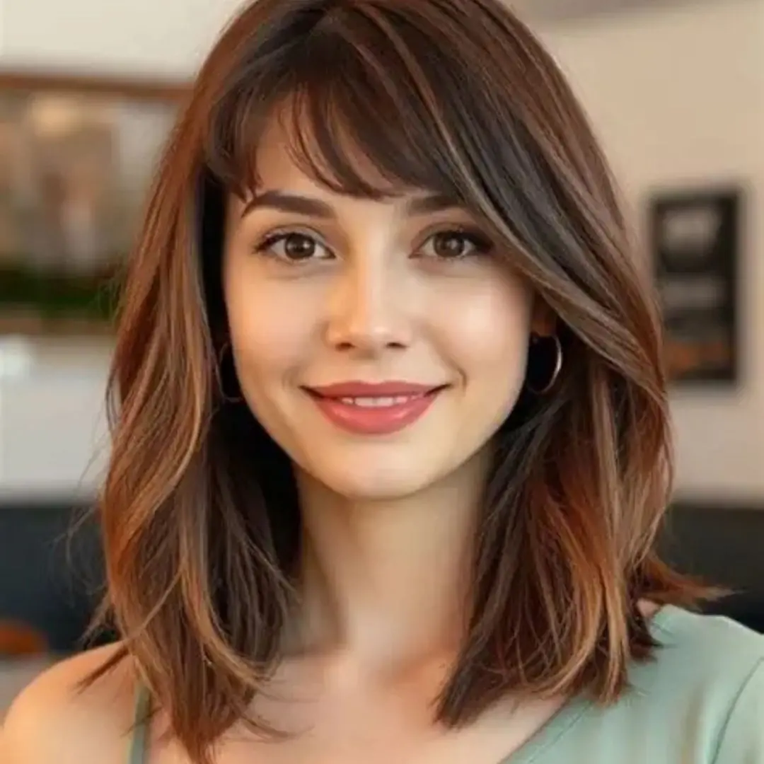 Shoulder-length cuts together with side-swept bangs make the face look shorter and also give angular features a soft touch. The eyes and cheekbones are highlighted due to the diagonal line of the bangs that balances the face shape. Volumes and movement are added to hair by layers, and hair is made light and bouncy. It is the ideal style of hair that women would want to have to have a stylish appearance that is also contemporary, without losing the chance of being versatile. It can be straight, wavy, or curled, depending on the tone that one wants to be. Light styling products retain the form, with the hair being natural and flowing.