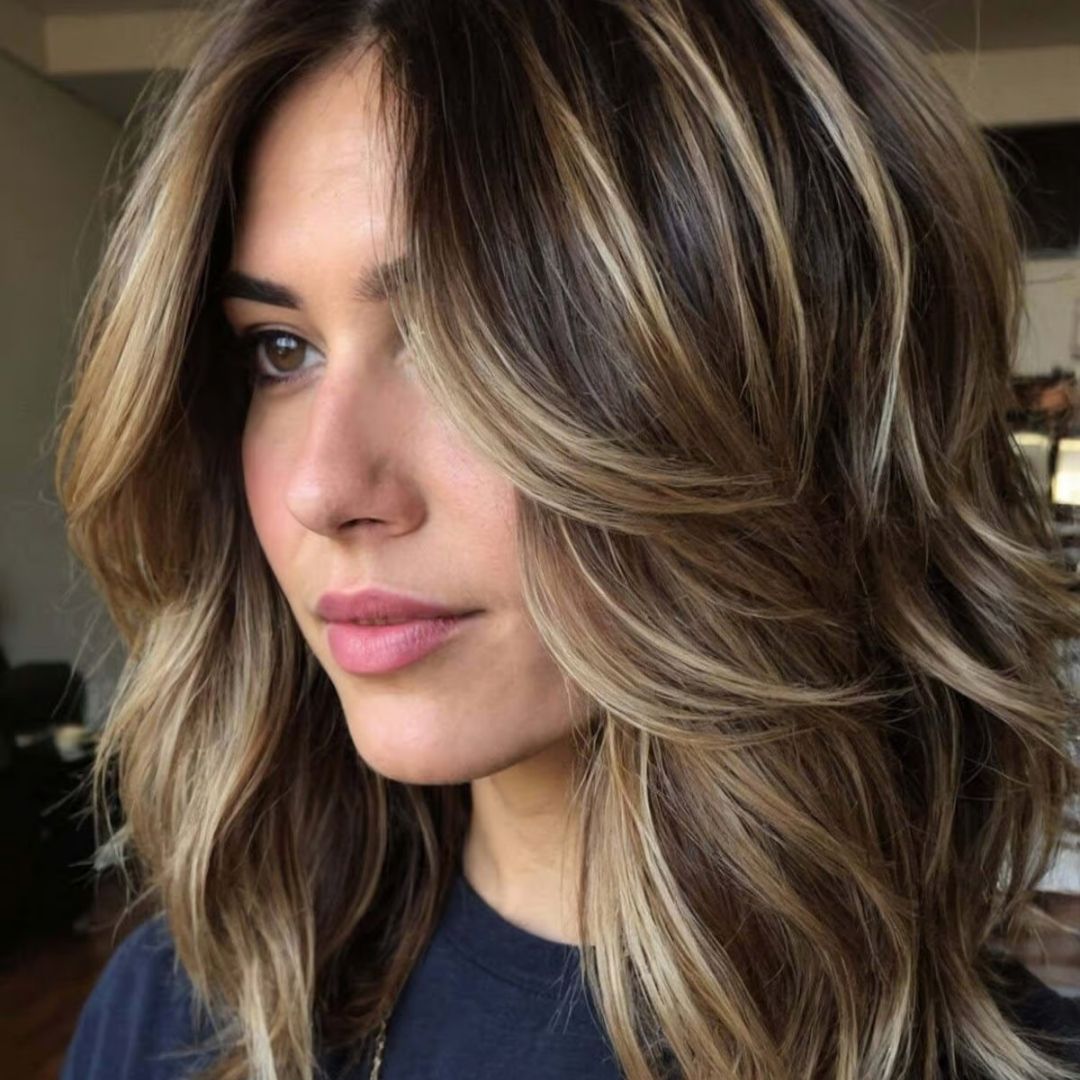 Highlights or balayage should also be added to layered, shoulder-length hair to add depth, dimension, and texture. The lighter shades on the layers are used to create the illusion of fullness and volume of the hair, and also to soften the shape of the face, which is rectangular. It applies to all types and colorations of hair,e nabling it to be custom-made to the individual’s skin color and preference. There is a glow and dynamic effect that is produced by layering highs and lows that attract the facial features without straight lines. The color is most flaunted with the use of styling options such as loose waves, curls, or straight hairstyles, which make the hairstyle contemporary and sophisticated.