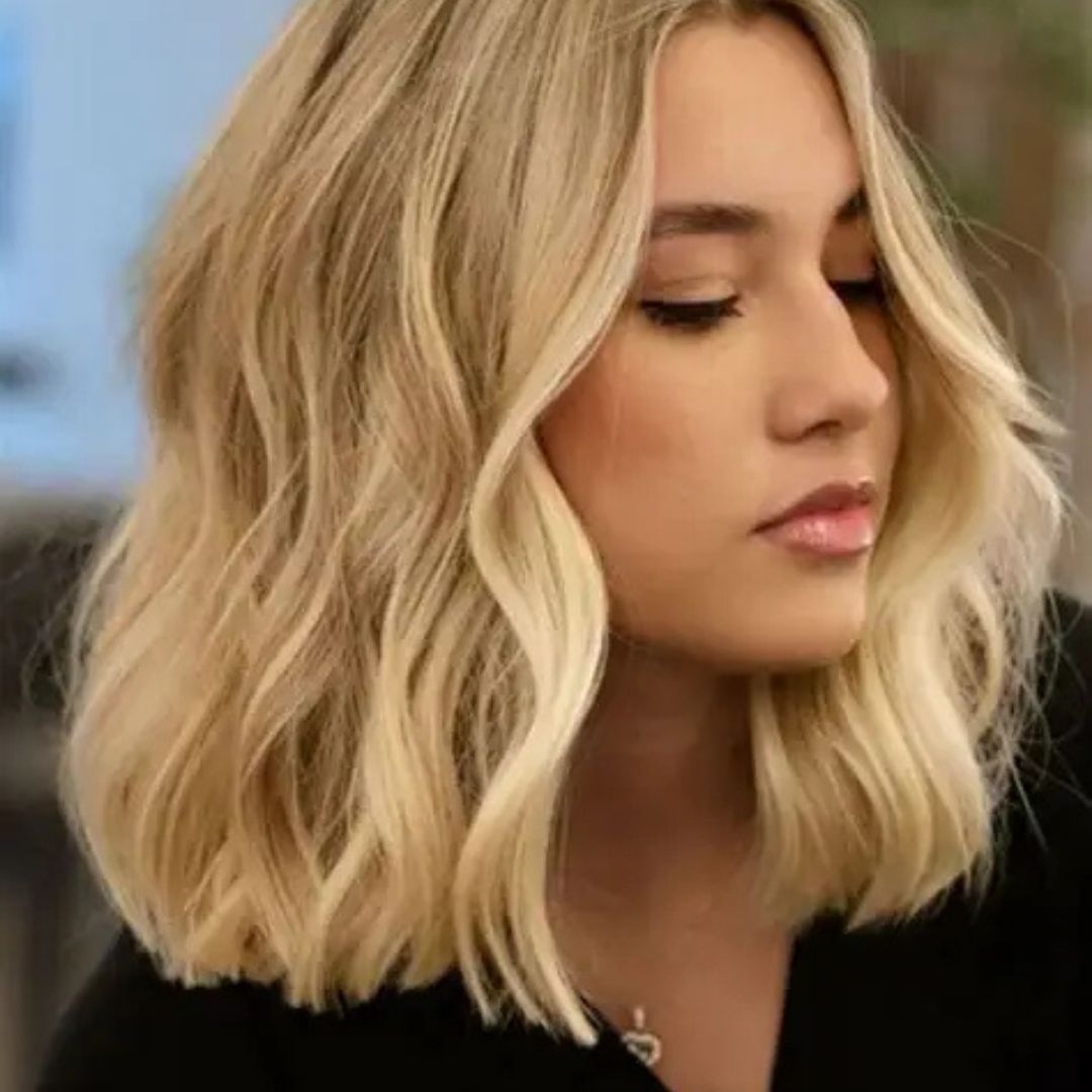 Shoulder-length hair is made to look romantic and feminine with the help of soft waves and face-framing layers. The natural volume of the waves and the layers of the cheeks and jaw line bring softness to the rectangular aspects, and the face seems proportionate. This hairstyle is versatile, and it can be used in informal and formal events. Tidless waves can be accomplished by simply using a curling wand or by braiding damp hair overnight. The asymmetry provided by the addition of a side part complements the soft rectangle face shape. This dress is perfect when worn by a woman who wants to be elegant and at the same time dress in a casual, day-to-day manner.