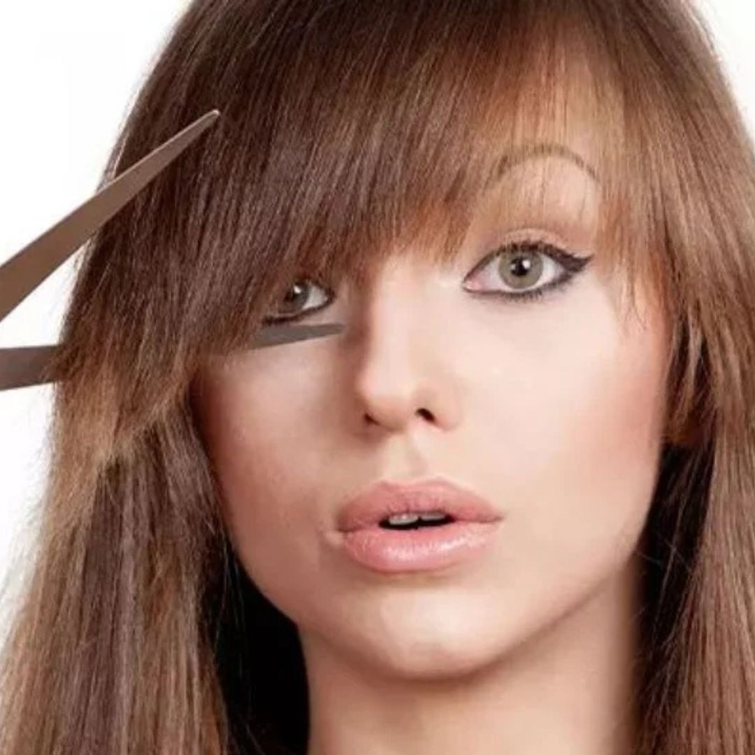 Angled side strands positioned along the length of the sides are very short at the beginning of the forehead and then begin to extend naturally over the cheek, lengthening the face. It is an angled cut that balances the roundness and accentuates your eyes and lips. It can be used with straight hair or slightly wavy hair and can be combined with layers or soft curls. The side bangs are long and angled with a sleek and refined look that can be worn in a work-related, event, or day-to-day environment. They are maintenance-free but have a great influence on the face structure as a whole.