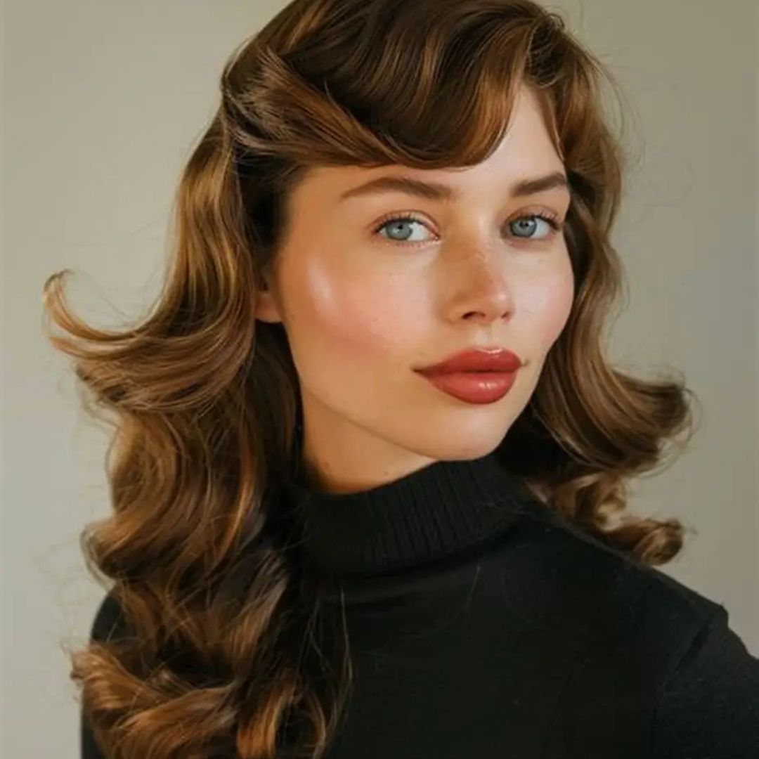 Combining side waves with side bangs gives volume and dimension, making a round face look longer and more molded. The waves have the effect of attracting attention out of the broadest features of the face and creating a romantic, feminine tone. This style is very much applicable to medium to long curly hair, and it can be accomplished with a curling iron or even natural waves. Wavy side bangs are a perfect match, as they can be worthe the workplace, on a date, or in workplaces or during special occasions, and they have a classic and appealing appearance.