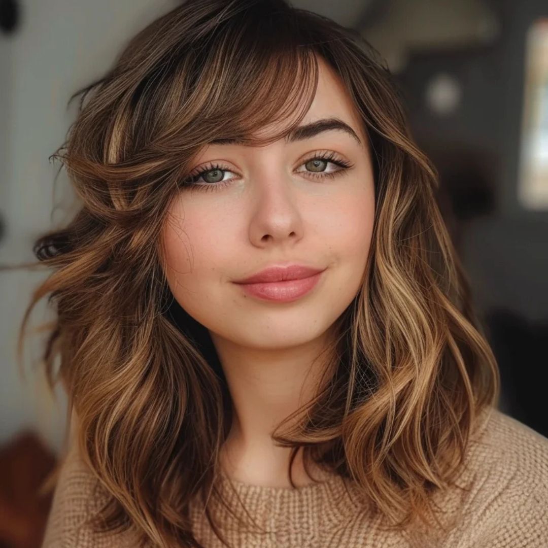 Side bangs are classic and elastic hairstyles that significantly make a difference in the look of a full, round face. On their part, they lengthen facial features by the incorporation of angles and dimensions while emphasizing the eyes, cheekbones, and lips. Side bangs can be adapted to any length, wavy hair, and any style, whether it is the soft, romantic waves, the choppy, edgy layers, or the sleek and smooth lines. The trick to making them appear flattering is to take good care of them, trim them, style them, and apply the appropriate products. Women with rounded faces and side bangs can wear it to look confident, stylish, and modern, without needing to hide their natural beauty, and have unlimited styling options.