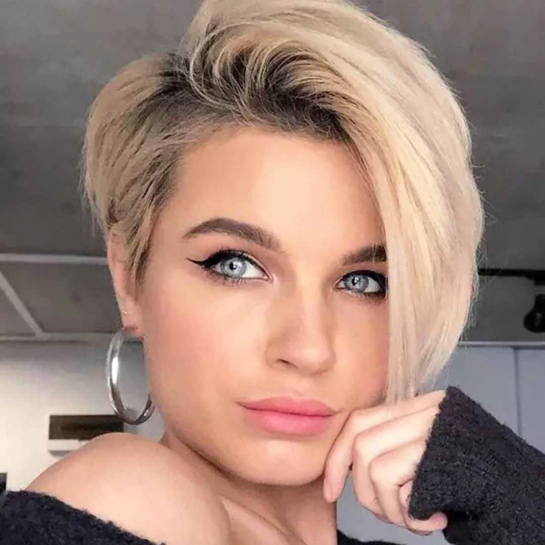 A side-parted pixie is bold, edgy, and flattering against triangle faces. The asymmetrical side part is balancing the jaw line, and the layers are textured to bring volume around the forehead. It is a low-maintenance category that suits short-haired people, and they would like to keep their appearance modern and stylish. It is possible to make it smooth, spiky, or messy based on the event. Dishevelled side part pixie accentuates eyes, cheekbones, and smooth, angular lower features. It is excellent to use when one wants to look confident, trendy, and can be worn in a variety of ways, plus it gives out a young and playful impression to the triangle-shaped faces.