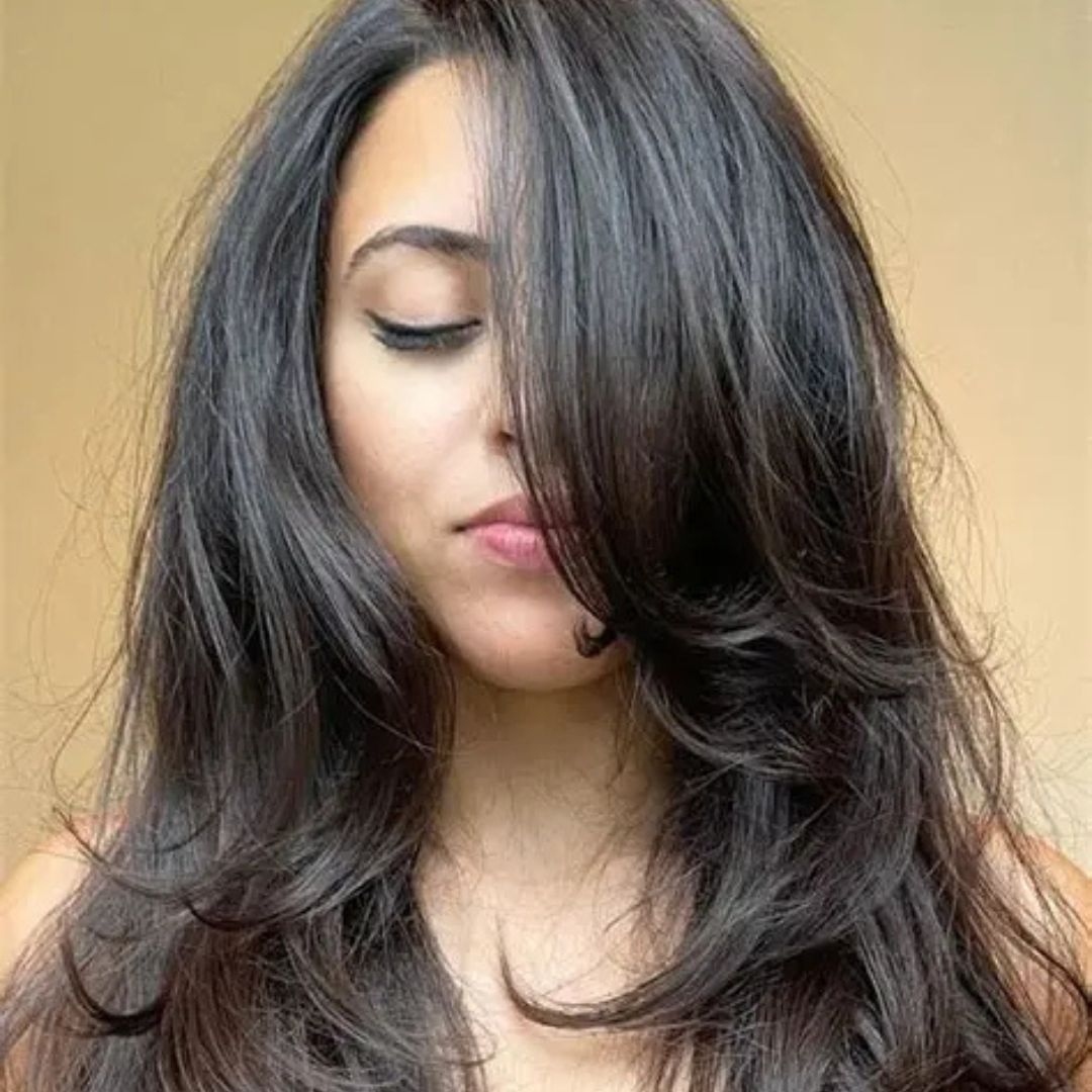 A triangle-shaped face would be complemented by long layers combined with a deep side part. The side layers are used to add volume and focus to the forehead, whereas the chin layers help in softening the wider jawline. This type of style is effective with straight, wavy, or slightly curled hair. Balayage or highlights can provide depth and dimension and attract attention upwards. It can be used to do both casual and professional styles, but can be styled with loose waves, a sleek blowout, or even subtle curls. Its long, layered side part is a carving that beautifully frames the face, giving it elegance and proportion.