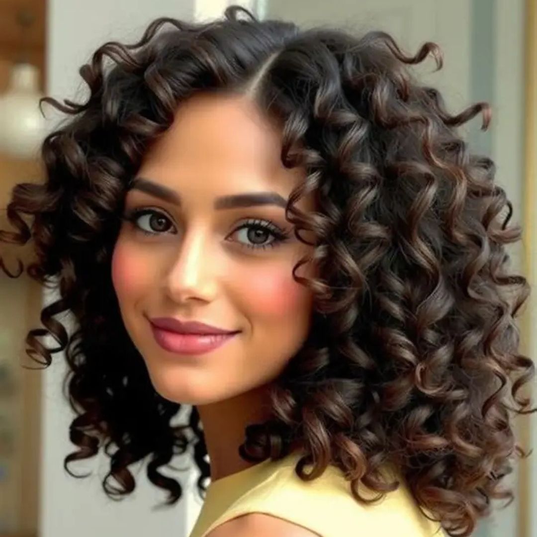 Curly parted waves can be used as an addition to the beauty of women who have natural curls. The side eliminates roundness with height and asymmetry. Apply curl lotion or mousse to create curls and curb frizz. Scrunch and dry or apply a diffuser to give as much volume as possible. This hairdo glorifies the texture and gives the hair a bouncy, movable, and personality look. It is excellent for daily styling or to wear to special occasions. It can be worn with a hoop earring or a plain clip to look stylish. Natural curly waves appear young, assertive and trendy and perfectly match the round face shape.