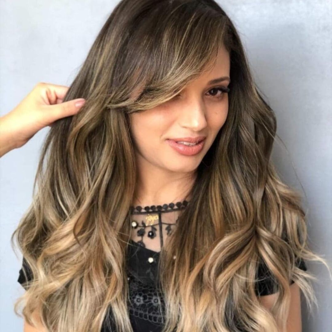 The flattering effect can be improved by adding ombre or highlights to hair with side-swept bangs to pear-shaped faces. The bangs and top layers are given a lighter shade to focus attention on the eyes and cheekbones to create a subtle balance on the jawline. The frames of the face are given a soft appearance wa with a side-swept bang, and color gives depth and dimension. It is a long and medium-hair style that can be used to express creativity. The color is preserved using protective hair products to have vibrancy. A plain hairstyle is transformed into a glamorous, trendy, and face-loving style by using color techniques and inside-swept bangs.