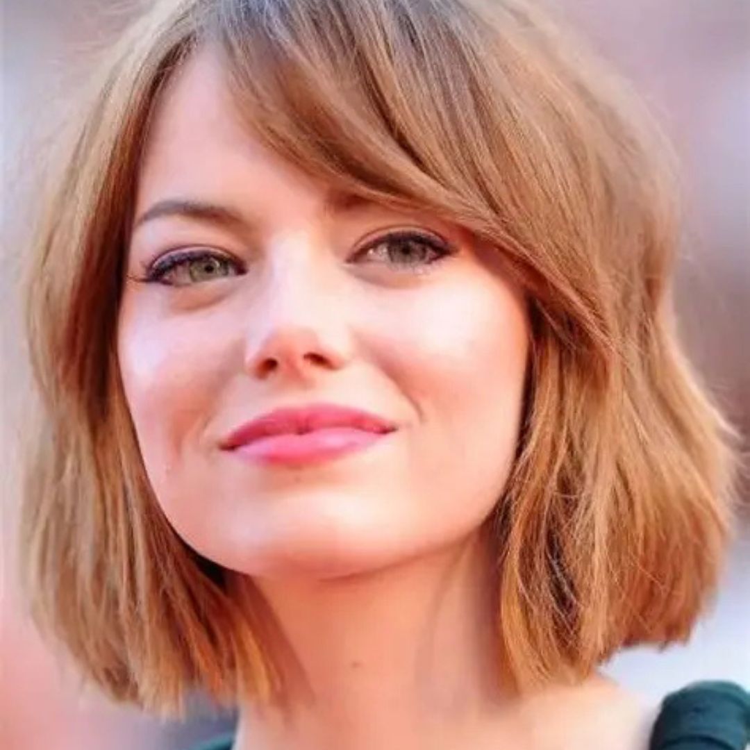 Another fashionable, low-care haircut is a bob that extends to the chin with side-swept bangs. The bangs also make the jawline soft, and the bob gives volume to the face as well, so that the angularity of the features does not look so harsh. This hairstyle is ideal for women who have shorter hair, although it can be styled in a straight, wavy, or even a textured style to make it modern. Bangs on the sides offer asymmetry, which physically elongates the face. Add some highlights to add depth and tenderness. This appearance is all-purpose, handsome, and suitable for work and even entertainment activities, hence admired by square-faced ladies who desire to appear elegant with ease.