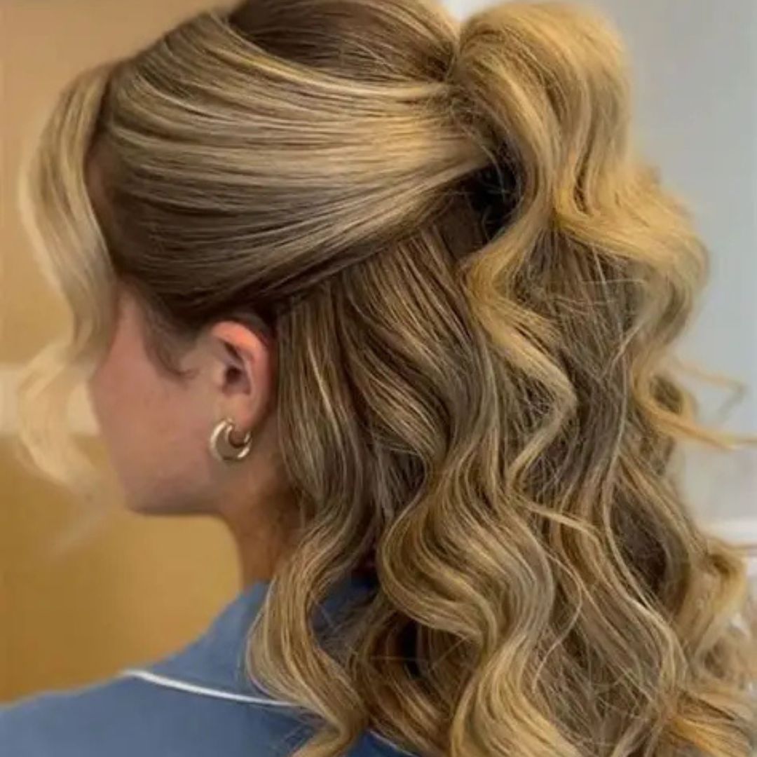 Softly curled hairstyles that are half-up allow the hair to fall off the face and leave the hair volume. Twist the lower part of your hair and fasten the upper part using a clip or a small ponytail. The style emphasizes the eyes and cheekbones and flattens jawlines, and stretches the look of the face favorably. Half -up curls are flexible to use in weddings, parties, or in daily life. Add soft waves on the face, make it romantic. The hairstyle is a combination of sophistication and informal beauty, and softens square oblong faces.