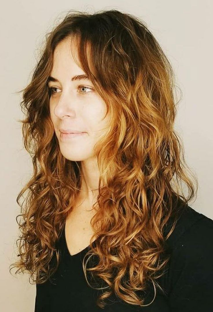 The layers added to long curls to make them voluminous help to avoid the impression that the hair is heavy, and it creates natural bounce. Layers beginning at the mid-length bring softness to the jawline and chin, which balances facial proportions. It suits square oblong faces very well through this style, which provides width without eliminating length. Apply curl cream or mousse to outline curls and add shine. Fancy layers are also possible in voluminous curls that are suitable during formal events, photo shoots, or when going out with friends. They produce a glamorous and dynamic look and emphasize the features of the face without straightening the face, thus making the face look fuller and more proportionate
