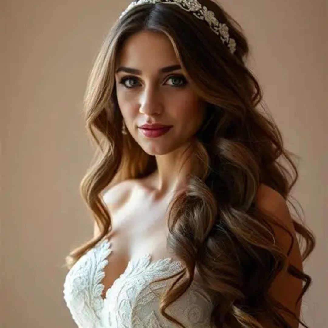 Add a braid crown to some flaxed curls to appear feminine and whimsical. Begin by creating curls that are loose and plait a strip of hair along the crown with pins attached to it. Allow the curls to run down the face to flatten cheekbones and add volume to the jawline. This fashion suits weddings, festivals, or love evenings perfectly. These curls, combined with a brai, contribute to the interest and dimension to the face, which is of the diamond shape. Spray with a light hairspray to fix the curls and the braid. The elegance can be supplemented with accessories such as flowers, pearls.