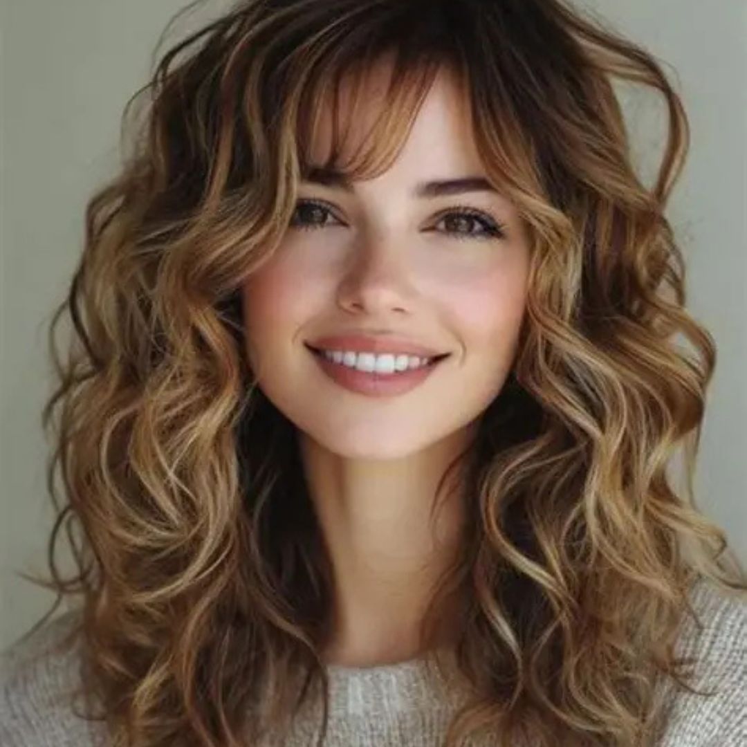 9. Blend Bangs with Curls: When wearing curtain or side-swept bangs, a mild curl to fit the soft curls will be suitable to have a unified and flattering fashion.