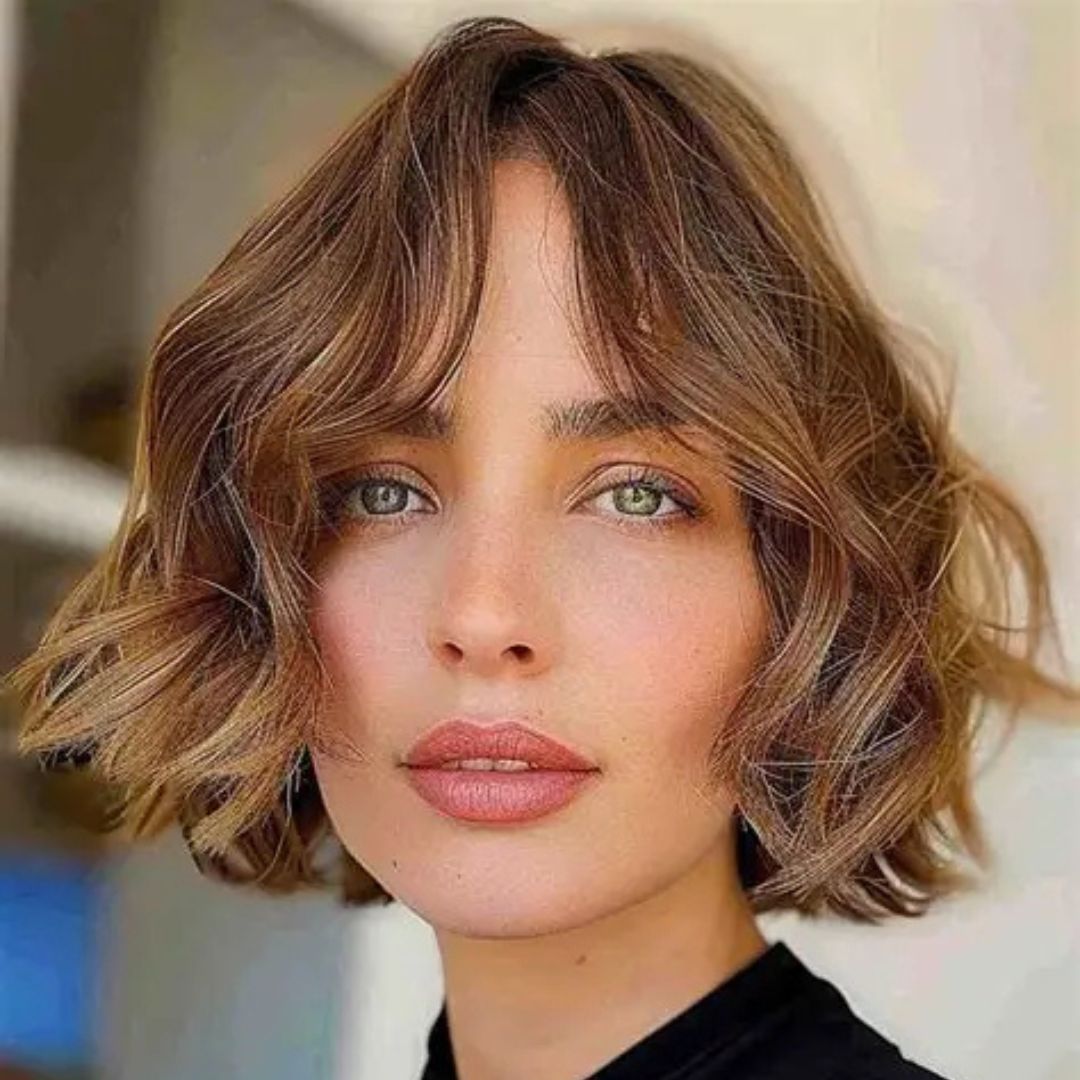 The wavy lob is very fashionable, contemporary, and one of the most flattering styles for rectangular faces. It stops right above the shoulders, which does not stretch the face, but instead provides width, which increases symmetry. The light waves provide bouncy movement and a feeling, making it appear pleniferous and refreshed. You are free to wear this cut in natural curls or heat waves. The slightly off-center section contributes to the reduction of angularity and volume. It is not high-tech, and it is convenient, with individuals at work, students, and active mothers. The wavy lob suits every density of hair and texture, thus becoming a universal favorite.