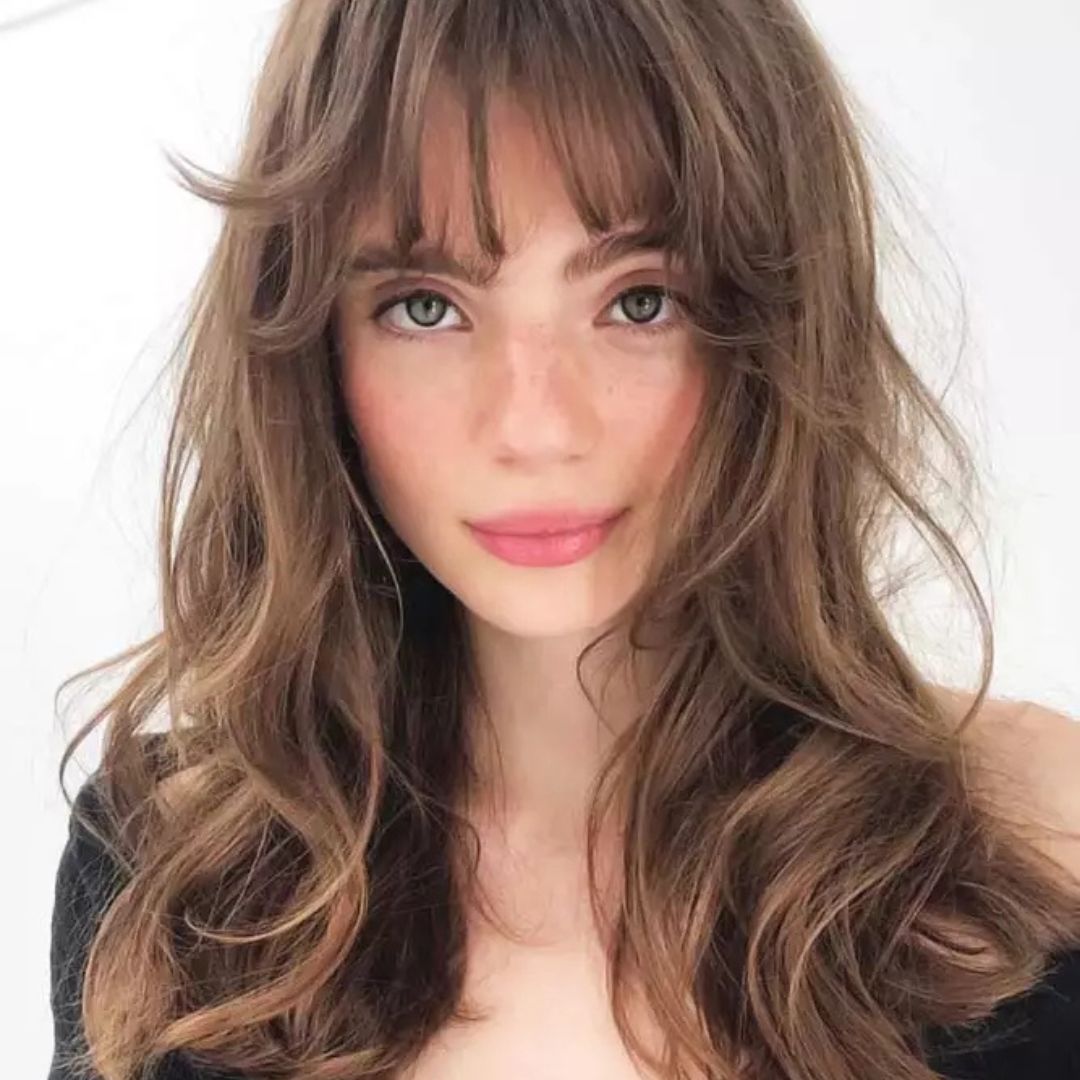 A: Curtain bangs, wispy bangs, and side-swept bangs are the best, as they have the effect of shortening the face and softening the angular features.