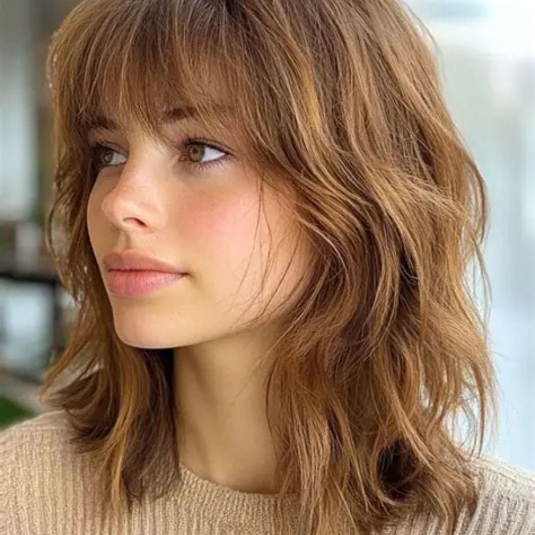 A square face is idealised with the help of a chin-length textured bob. Layers at the jawline soften sharp edges, and light waves create volume and movement. This is a classic cut that is simple to wear and can be worn in casual and official gatherings. Accompanied by a side parting to have a balanced appearance of an oval shape. Lightweight texturising sprays are used to keep the natural and messy appearance. This would be a perfect match among women who desire to have a stylish low maintenance hairstyle that does not put much emphasis on the face but complements it instead.