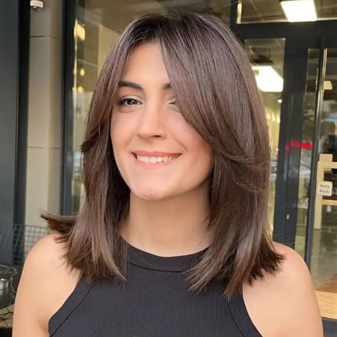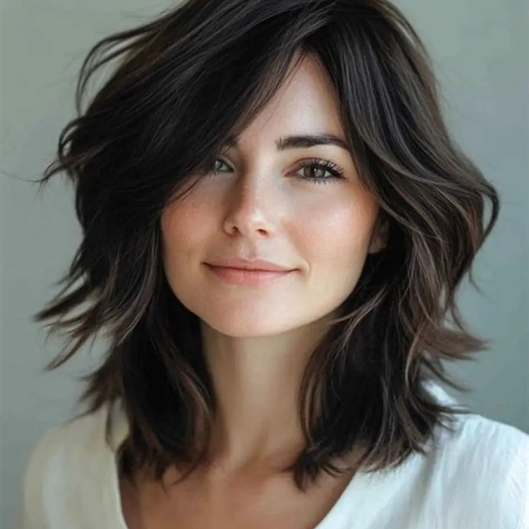 Feathered ends are very soft and moving, and they also assist in the visual softening of the jaw in square faces. Airy layers spread all over the mid-lengths eliminate weight and establish movement. A loose, beachy wave adds the effect of texture and creates a romantic, feminine outline of the face. This is the most flattering cut across all women who have a thick or coarse hair type because it avoids the boxy look. The side part enhances the appearance because the focus moves not horizontally but at an angle.