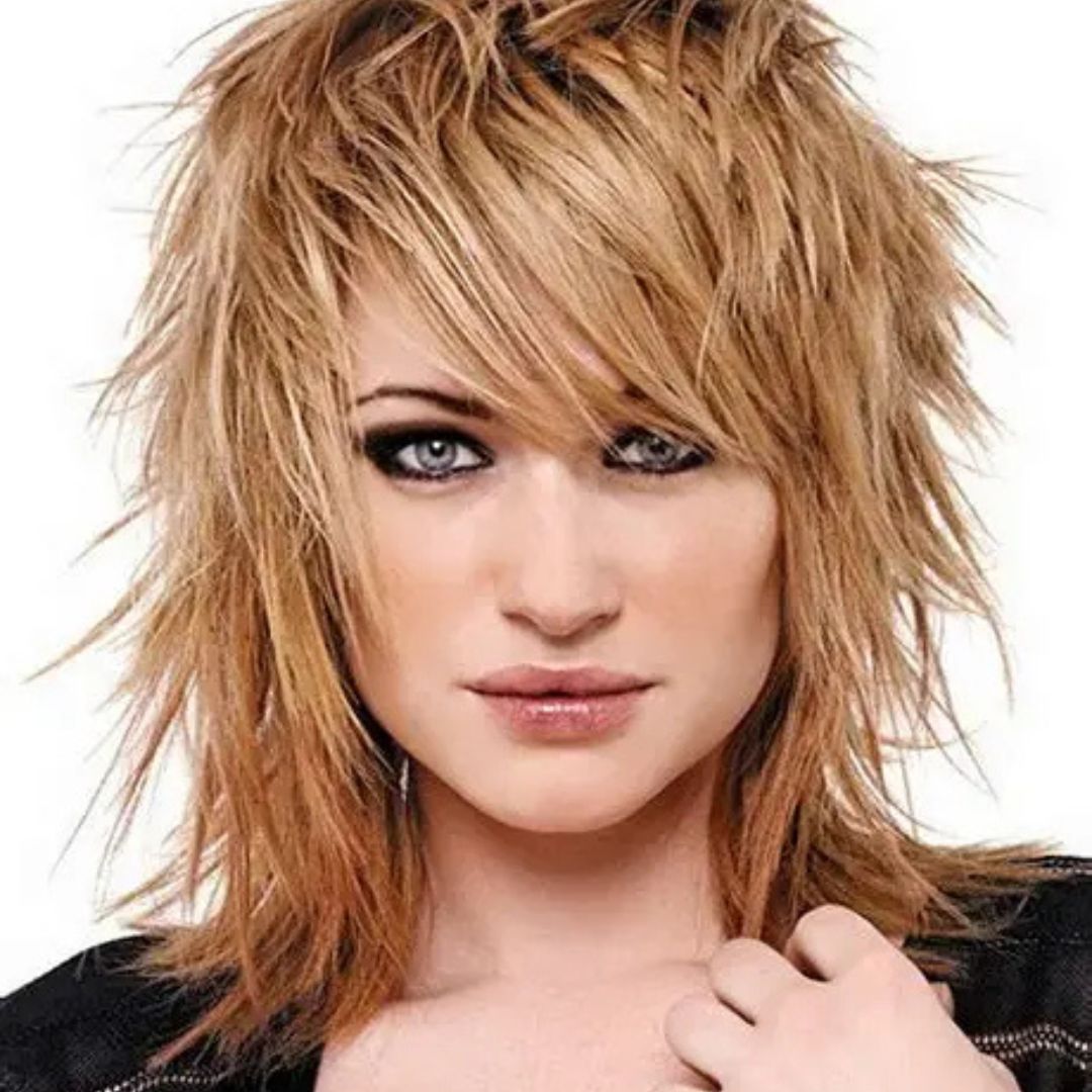 A shag hairstyle in the modern style with choppy layers creates immediate movement and gentleness to square-shaped faces that are wide. The unequal texture serves to disrupt the symmetry of a strong jawline, and the face will be more oval and naturally uplifted. This haircut looks fantastic in loose waves or natural curls, and it has a nonchalant appeal. Facial framing is further advanced by the addition of long curtain bangs that move the eye upwards towards the cheekbones and not the jaw. The layered shag is an easy-going and suits those women who are fond of a slightly edgy but feminine look. Suitable for medium to thick hair.