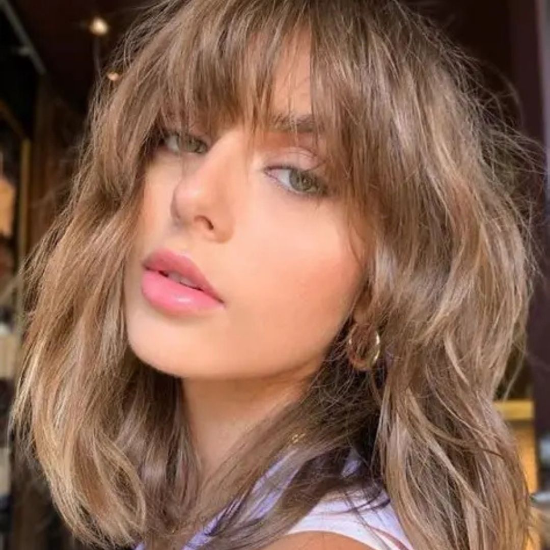 The medium-textured haircut is one of the most significant additions to the square, which is accompanied by the addition of the curtain bangs. The shape of face-framing flattens the cheekbones and forehead, giving them a slim appearance. The medium layers and lightweight texture across the length provide an opening in the eyes, as well as a decrease in the focus on jaw sizes. This hairstyle is beautiful with natural waves, beach, curls, or volume at the top to make it higher. It is an ideal combination of both fashionable and figure-flattering, and is the perfect choice when a woman wants to change her style and appearance without making herself shorter.