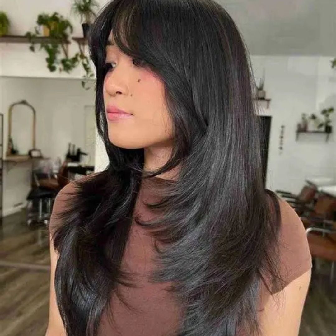 Bangs that are laid with wispy front strands are perfectly aligned with the other hair cut, and they provide depth and texture. They blur the harsh lines of a hard rectangle face, as well as giving volume and motion. This style is best suited to long or medium-length hair and is paired with the cuts of the layers, appearing airy and lightweight. A round brush during the blow-drying process increases the effect of natural feathers. Bangs, too, are layered and can be worn in either form, which gives them the option to be straight and sleek or to be loosely curved and romantic and soft. Trims should be done periodically so that the layers do not look thick and flat.