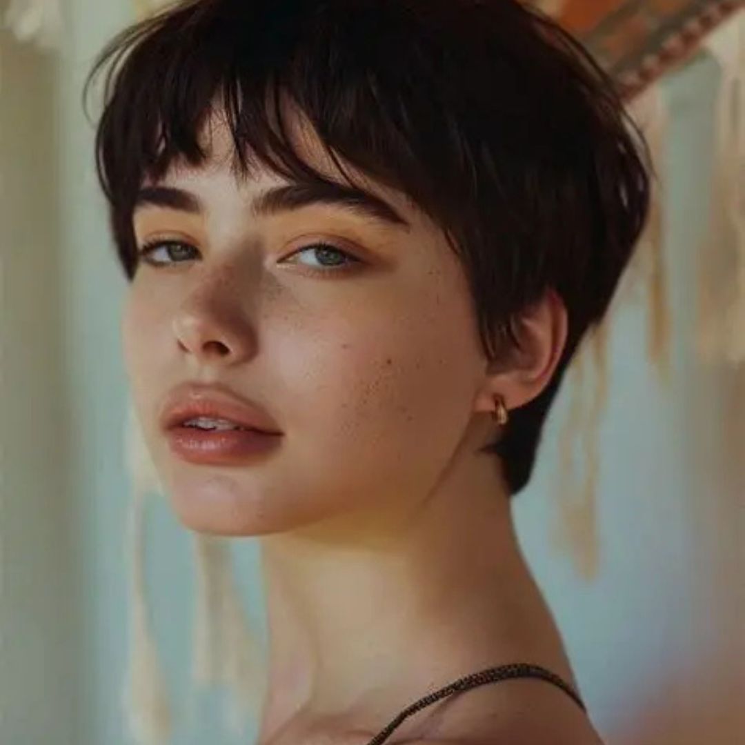 A pixie cut with fringe is a daring and yet feminine idea that perfectly rounds out square lines on the face. The brief length eliminates the volume around the jawline, and the light bangs bring the attention up to the eyes and cheekbones. This mix is a sleeker look that makes the face look elegant, and it does not need much daily styling. The top part is added with a texture that gives the facial structure height, ht which extends the structure further. It is a fantastic style that is applied by confident women desiring a modern and fresh look. The style looks good on naturally straight or wavy hair, and it is compatible with trendy accessories.