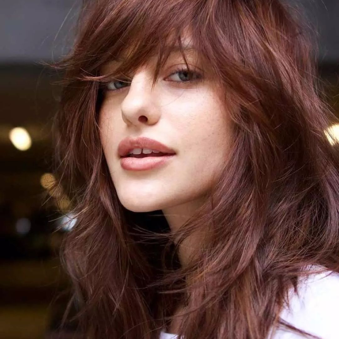 Their choppy layers, along with side bangs, make them appear modern and edgy to balance the narrow square face. The side-swept bangs sever the jaw line, and layers create texture and avoid being heavy. Styling refers to the act of massaging hair using a hair texturizing spray with a gel-like substance to make it appear thicker and even. This is a medium-sized hairstyle that can be used on wavy or straight hair and is suitable for a casual or semi-formal occasion. The stratified appearance dilutes the angularity and provides a childish, radiating appearance. This kind of side bangs adds depth and brings out the eyes without feeling like a big deal at all. This is a carefree, casual feel.