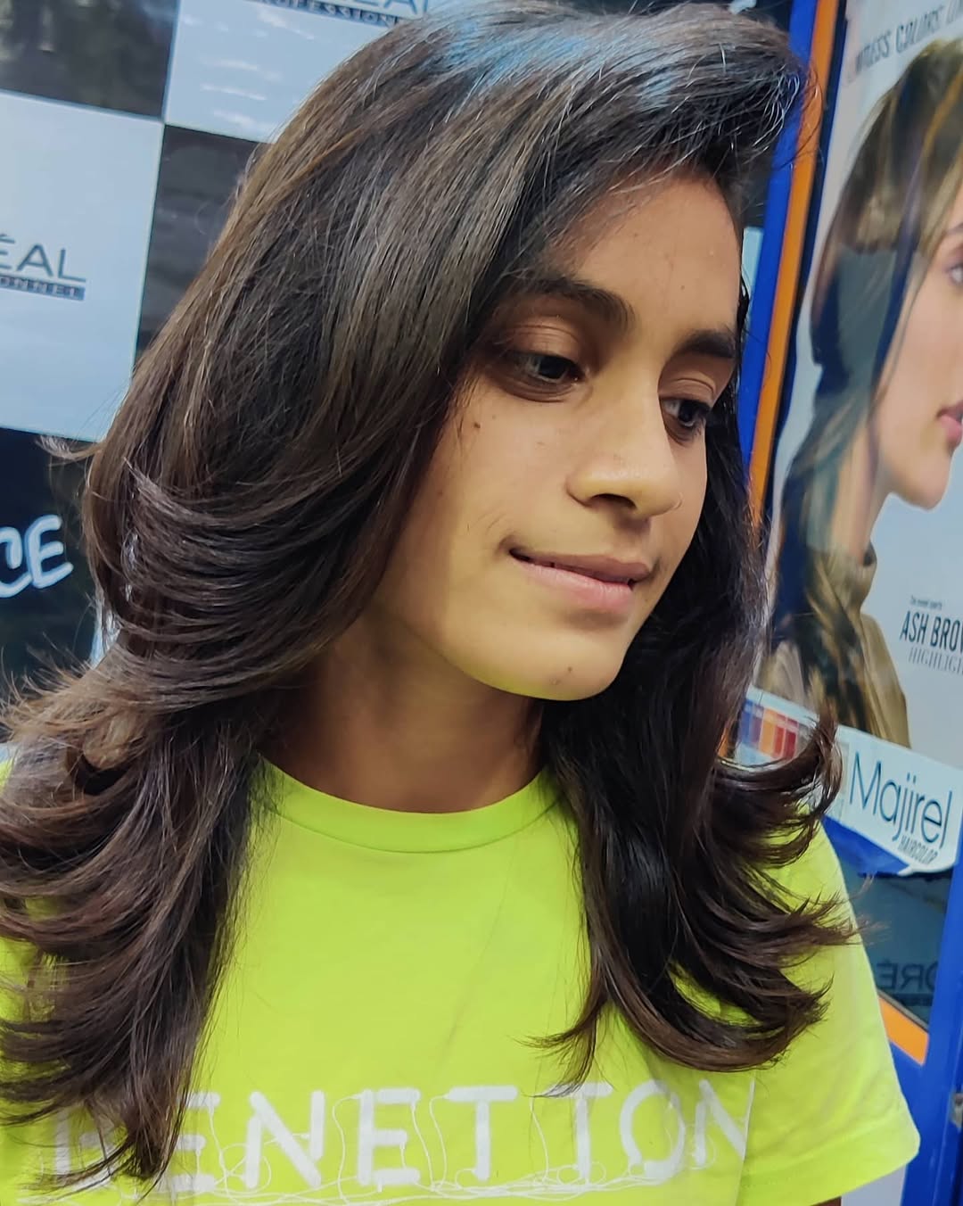 A long cut with side-swept bangs is a classic and an all-around style. The layers make a movement and volume, and the bangs frame the face softly, bringing out cheekbones and jawlines. This is suitable for medium and thick hair and can be either straight or with slight waves. It fits well in casual as well as professional environments, creating an elegant and relaxed look. Long cuts with side-bangs are also versatile- tying back hair or wearing loosely both are flattering. This blending of refined and natural and feminine feel brings out the symmetry of an oval face.