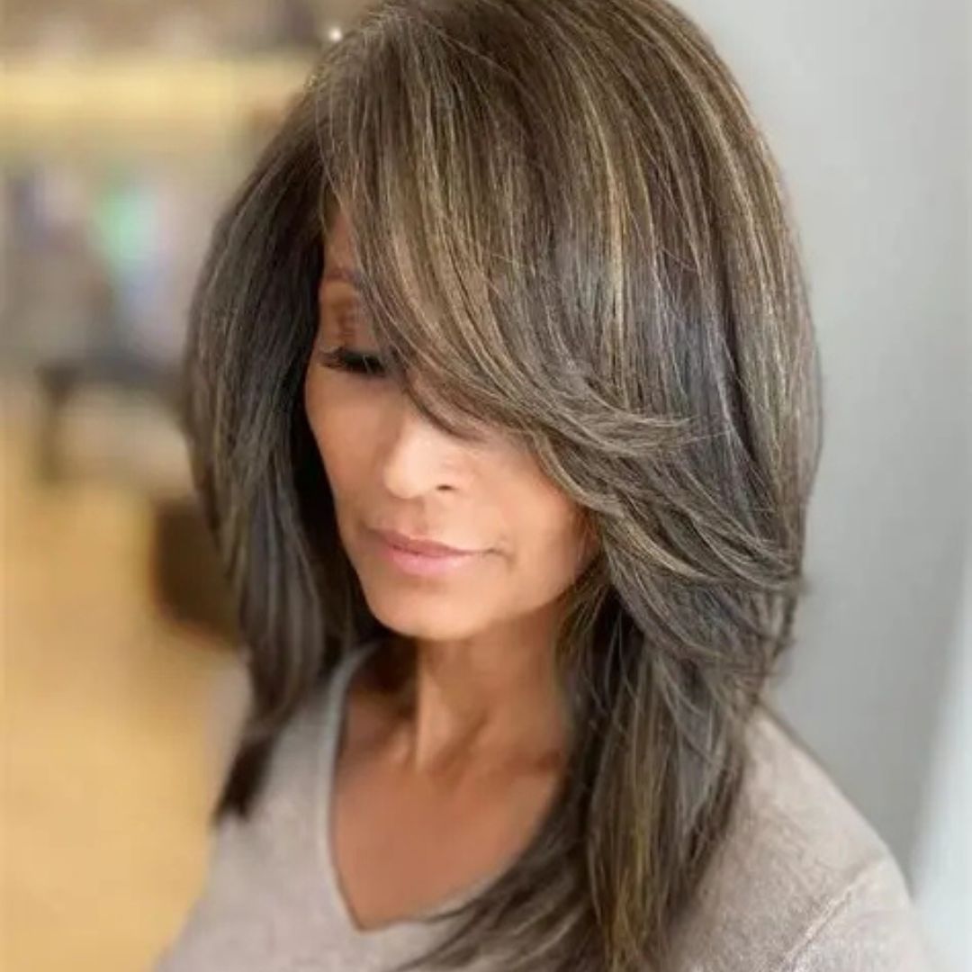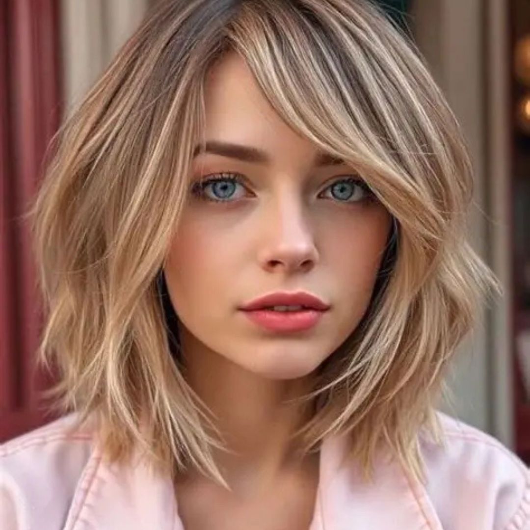 A medium-length layered hairstyle combined with side-swept bangs is also going to present some movement, texture, and depth. This is a general style that can be worn on an everyday basis, in the workplace, or in any other social event. Layers do not make the hair look flat, and the bangs are used to slightly soften the forehead. The blend perfectly fits oval faces, adding natural symmetry to their faces and emphasizing essential features on their faces. It is a simple style that is comfortable to wear, can be applied to both straight and wavy hair, and can be creatively styled in forms of curls, waves, or sleek finishes. Side-swept bangs cut through the layers of medium hair create a perfect, classy, and relaxed appearance.