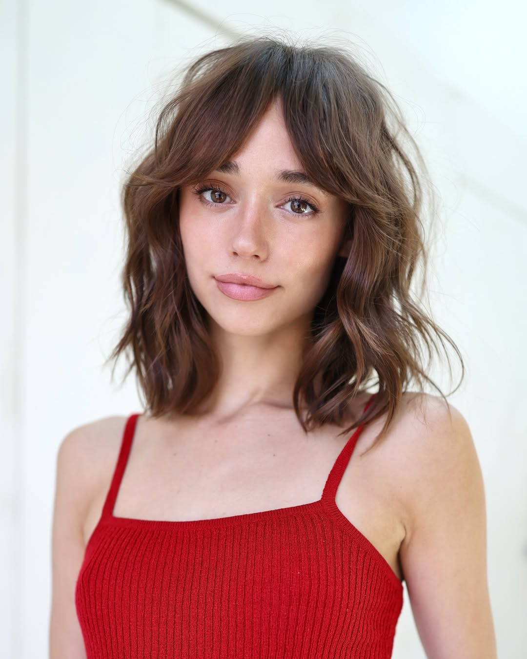 Shoulder-length waves that have been messed provide a carefree, casual appearance and volume and texture. This style is ideal to be worn on a daily basis, and it fits perfectly on oval faces. Let some loose waves be made with a curling wand and then mess them with fingers to make them look natural. Shoulder waves are simple to care for and do not require a lot of styling, whether you want them straight, half-up, or in low ponytails. Volume and hold can be added with the help of a light texturizing spray. The hair feels light and lively, and the features of the face are softened by this effortless style, yet the style remains smart and modern.